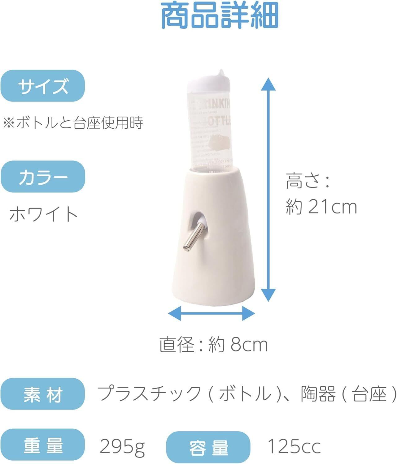 【商品詳細】 ボトル容量: 125cc (高さ 約14cm x 直径 約4cm) サイズ 高さ:約21cm, 幅:約8cm, 奥行:約8cm ※ボトルと台座組み合わせ時 重量 : 295g カラー ホワイト 素材 プラスチック(ボトル)、陶器(台座)