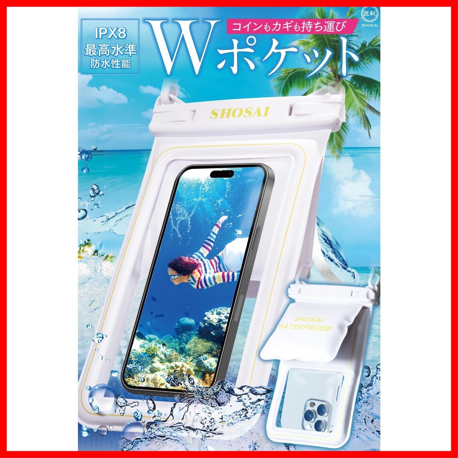 匠彩【小物収納ポケット付】 防水スマホケース スマホ 防水ケース 携帯 iPhone 海やプール 白