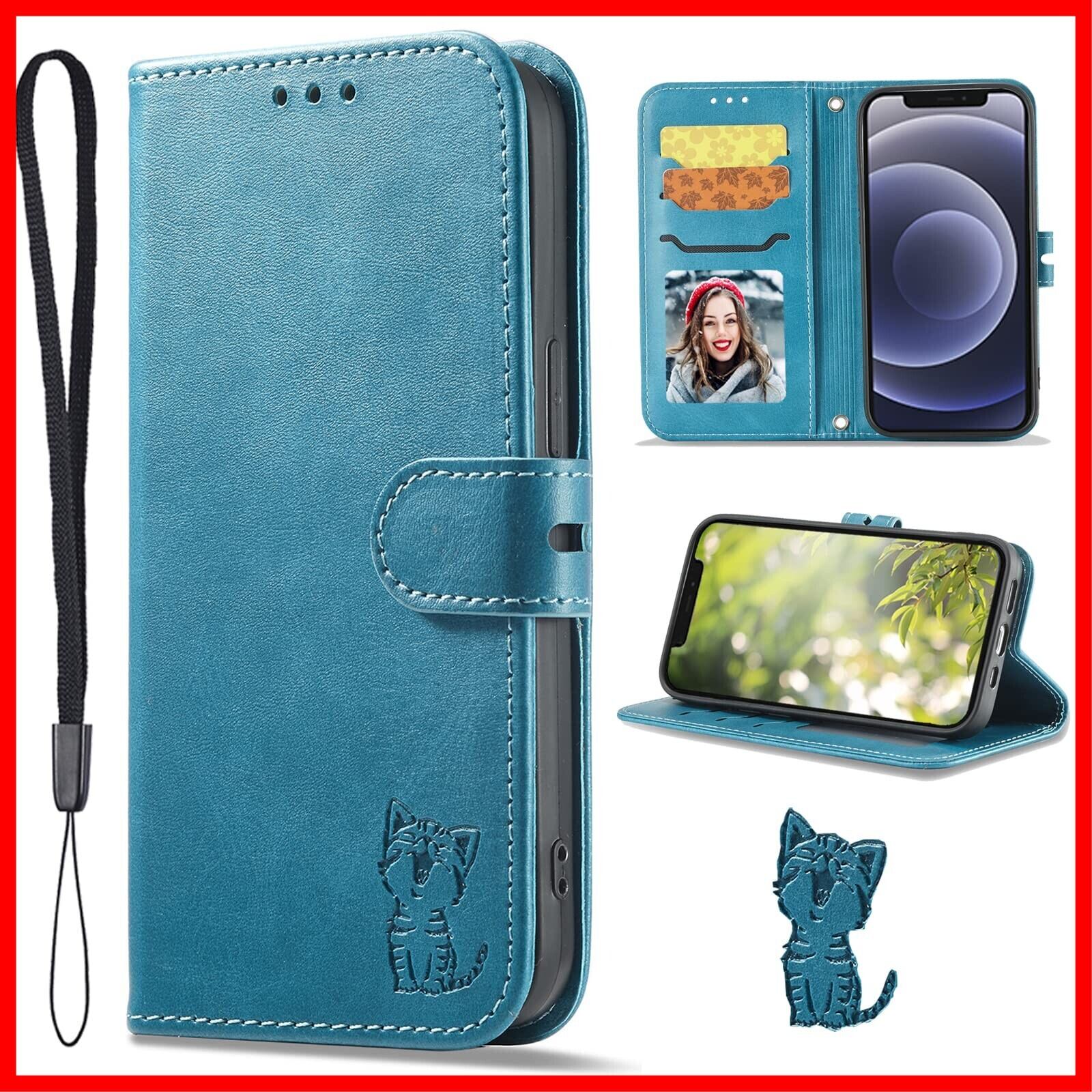 Xiaomi Redmi 12C ケース 手帳型 Redmi 12C 手帳型ケース スマホケース シャオミ レッドミ12C ケース 携帯ケース redmi12C case カバー PUレザー TPUケース ストラップ付き 財布型 ベルトマグネット スタンド機能 かわいい 笑顔猫柄 耐衝撃 汚れ防止 薄型 (Xiaomi Redmi 12C 対応) ターコイズ