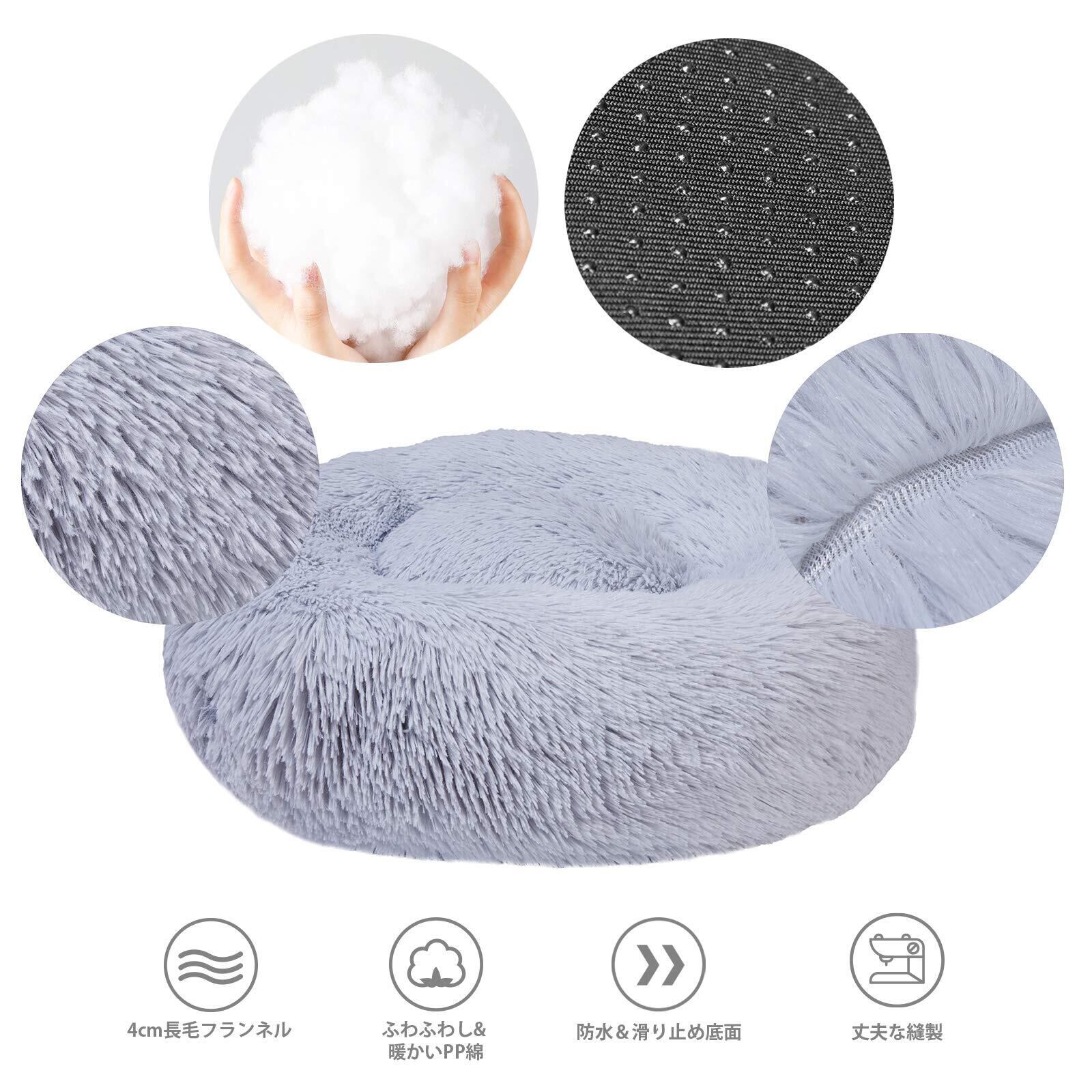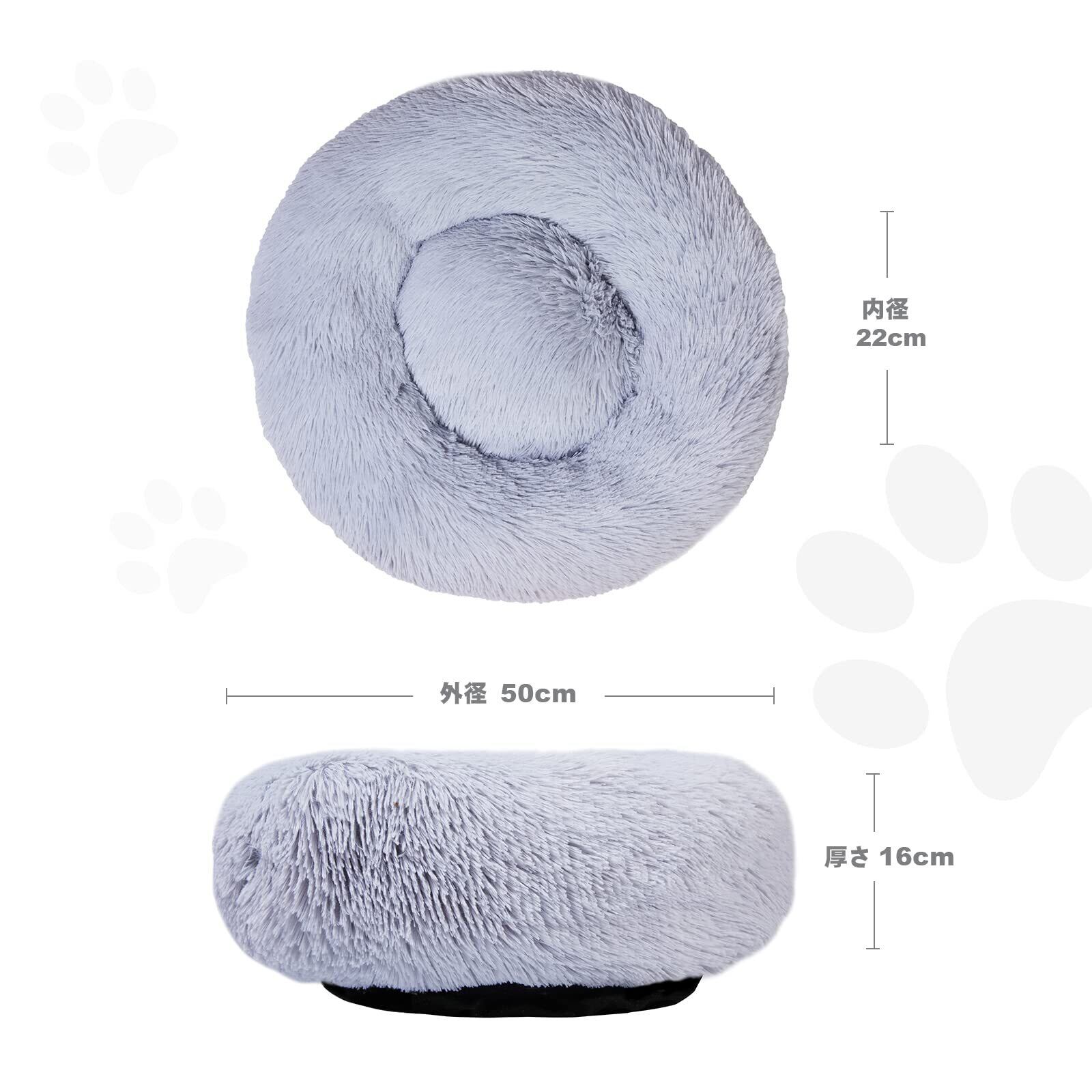 Aurako 50cm 犬ベッド 猫ベッド ふわふわ 丸型 クッション ドーナツペットベッド ぐっすり眠る 猫用 小型犬用 もこもこ 暖かい 滑り止め 防寒 寒さ対策 洗濯可能 子犬 猫用 サイズ選択可 ライトグレー | hananoki