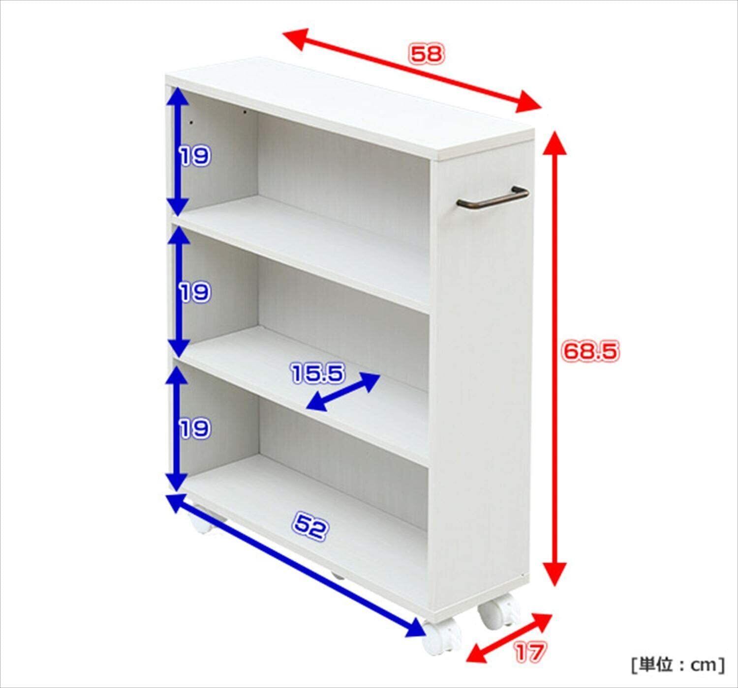 本体サイズ:幅58(取っ手なし:55)×奥行17×高さ68.5cm
