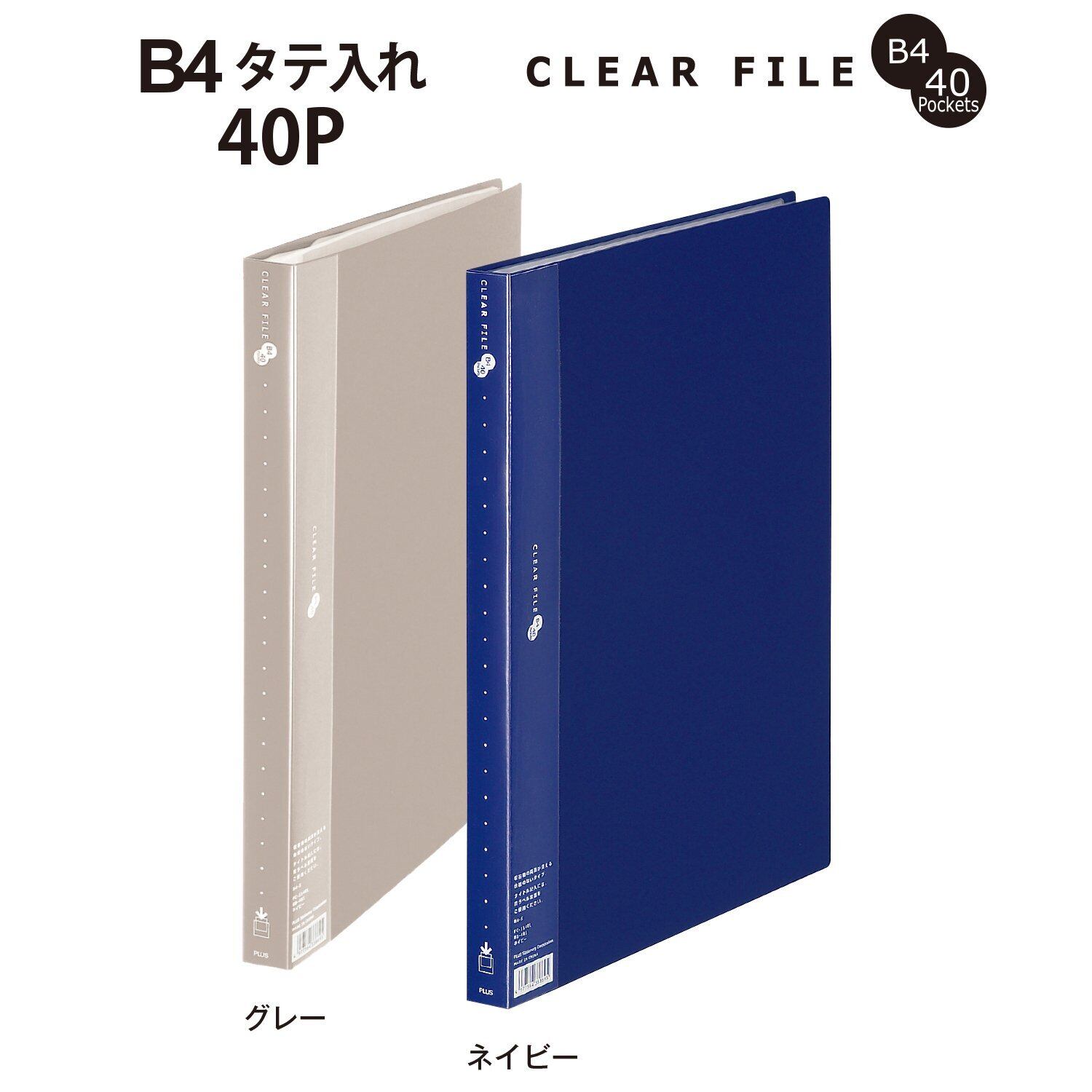 プラス クリアファイル スーパーエコノミー B4縦 40ポケット 88-481 ネイビー
