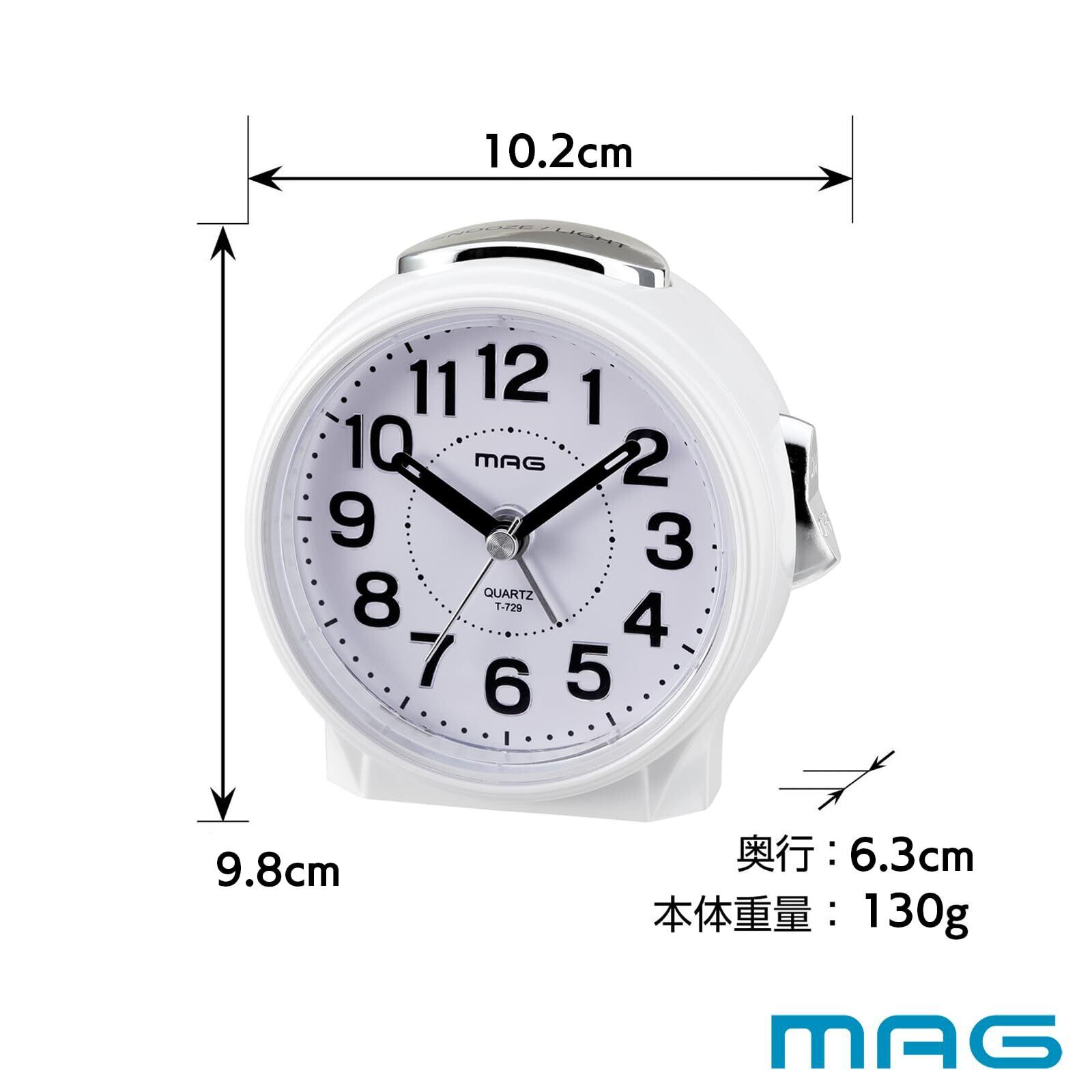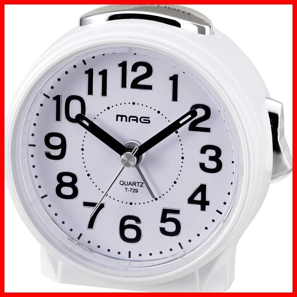 MAG(マグ) 目覚まし時計 置き時計 アナログ 静音 連続秒針 電子音 アラーム スヌーズ ライト ホワイト ブルーブライト T-729 WH-Z ノア精密