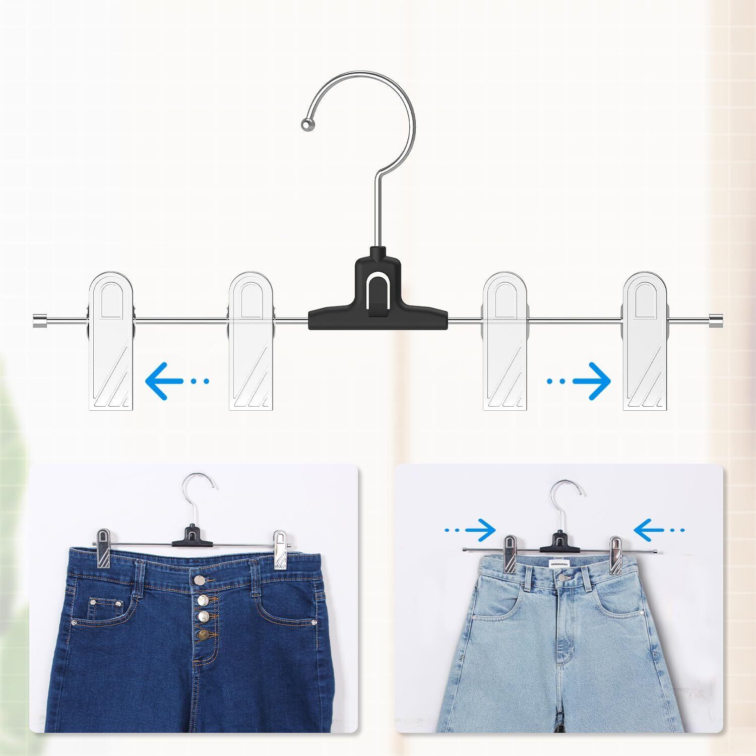 VEHHE ズボンハンガー スタッカブルフック設計付き省スペーススカートハンガー 調節可能なクリップ付き多機能ハンガー 360度回転式滑り止めハンガー 20本セット