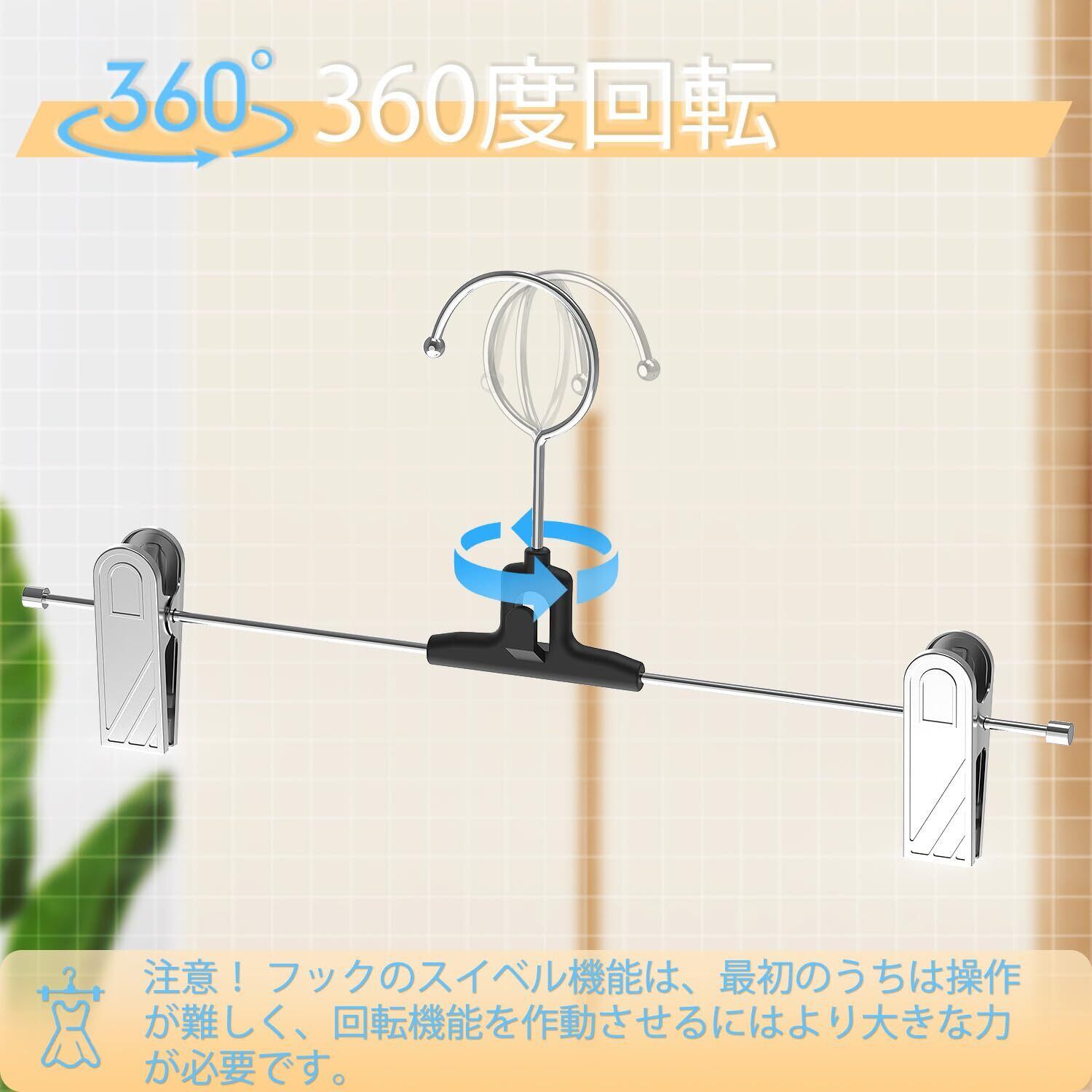 【すべり止めクリップの幅調節可能】 ハンガーの360°回転クリップは左右に移動可能。ズボン、スカート、帽子、ネクタイなど、掛けたい服のサイズに合わせてクリップを動かすことができます。
