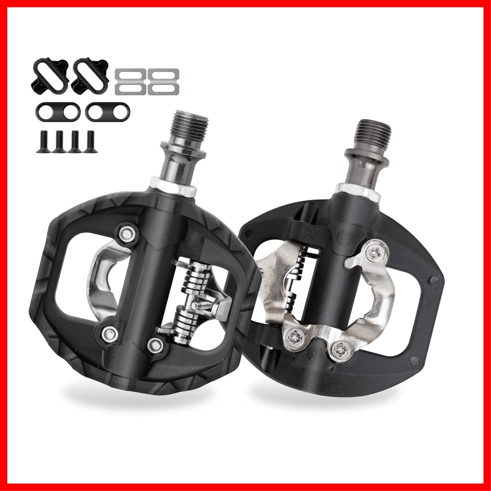 ロードバイクやクロスバイク、MTBに最適なマルチペダル。シマノSPD対応 片面フラット 片面ビンディングペダル ペダル本体の調整ネジを調整することで、クリートを固定する強さを設定できます。 片側がフラットなので、通勤時や街乗りのスニーカーや、ちょっとそこまで行くのに便利です。 ・ビンディング面は固定調整付きで脱着の強さ調整ができます。 ・六角レンチペダル交換タイプです。 ・(おすすめ)ペダルの交換時にグリスを塗ると固着を防止するのでグリスは塗っておく事をおすすめします。