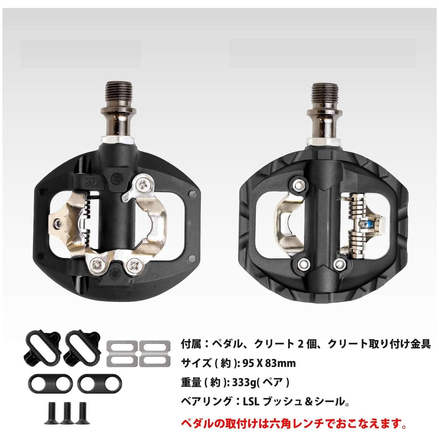 ペダルの交換時にグリスを塗ると固着を防止するのでグリスは塗っておく事をおすすめします。付属:ペダル、クリート2個、クリート取り付け金具 サイズ(約): 95 X 83mm 重量(約): 333g(ペア) ベアリング: LSLブッシュ&シール