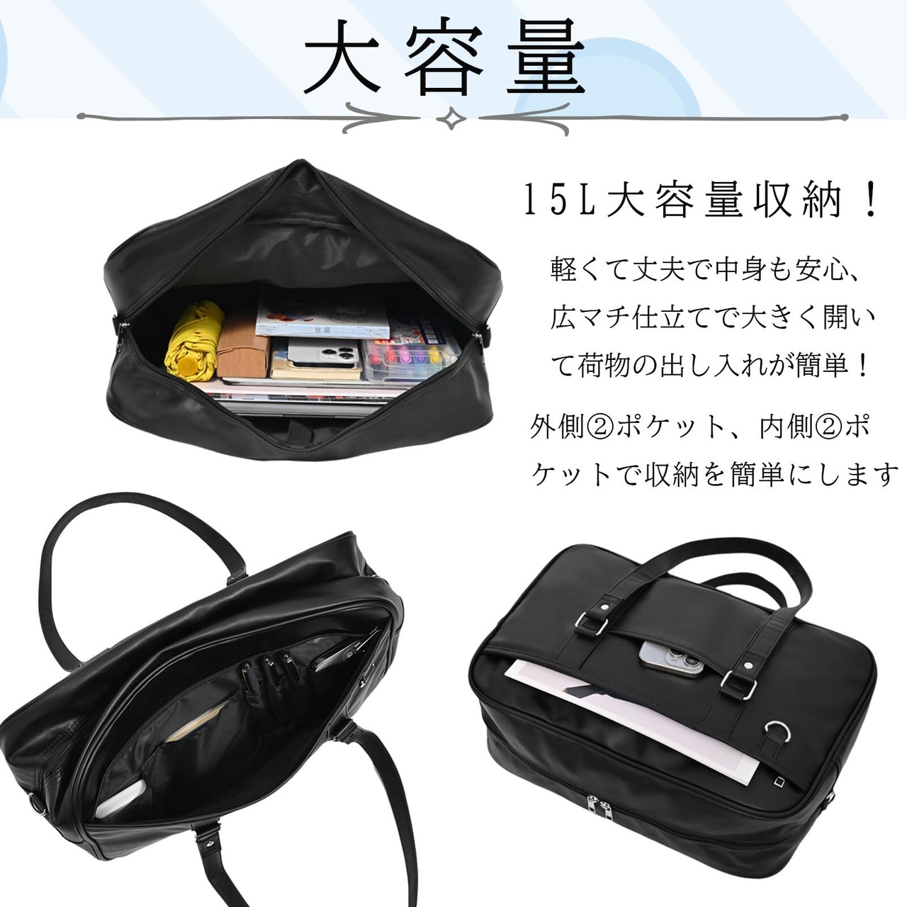 [Wowcarbazole] スクールバッグ 高校生 女子 合皮 スクバ 学生 通学 大容量 ボストンバッグ 軽量 肩紐長い 男女兼用