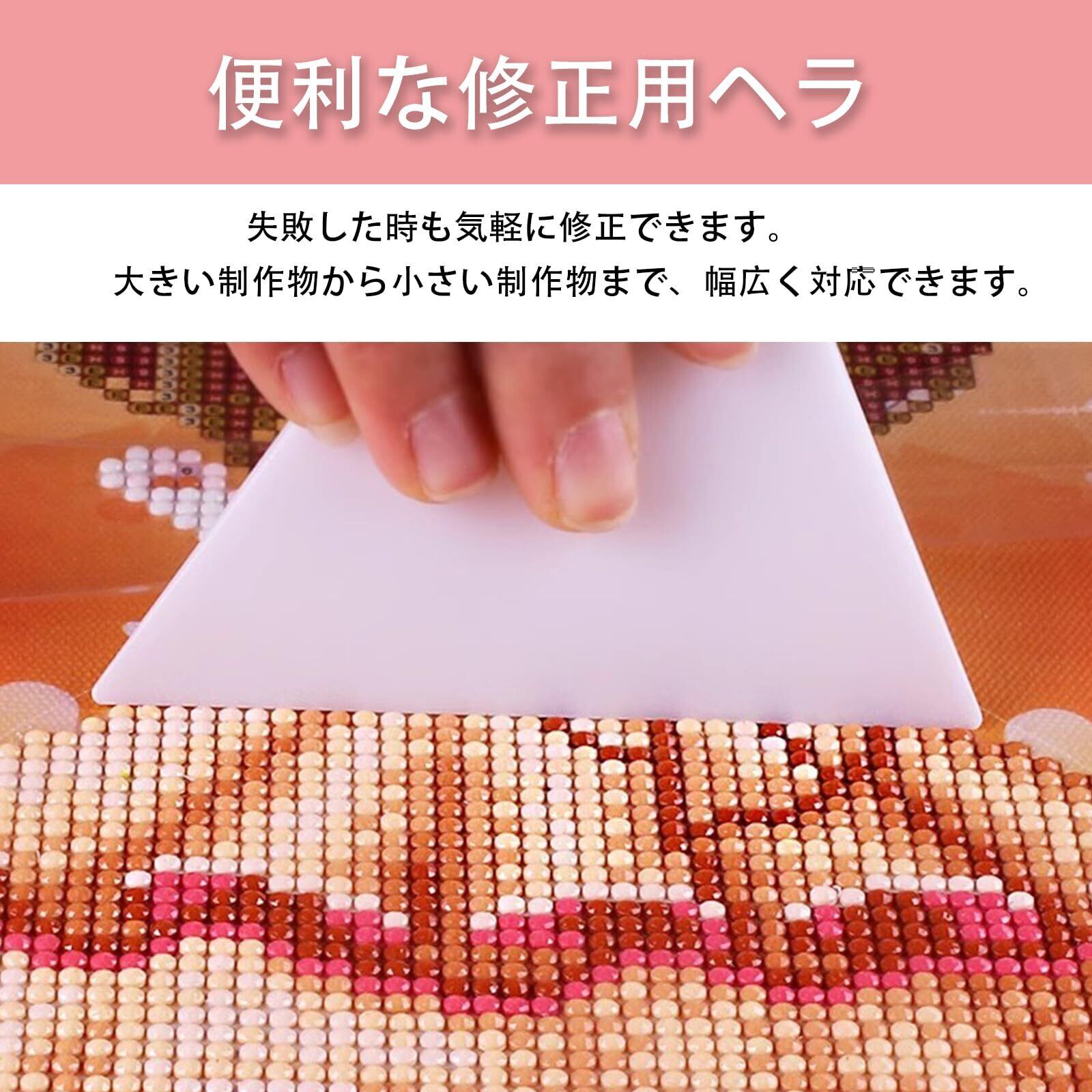 便利な修正用ヘラ:ビーズを取り外すための修正用ヘラは2枚。ダイヤモンドアート制作で失敗した時も気軽に修正できます。大きい制作物から小さい制作物まで、幅広く対応できます。