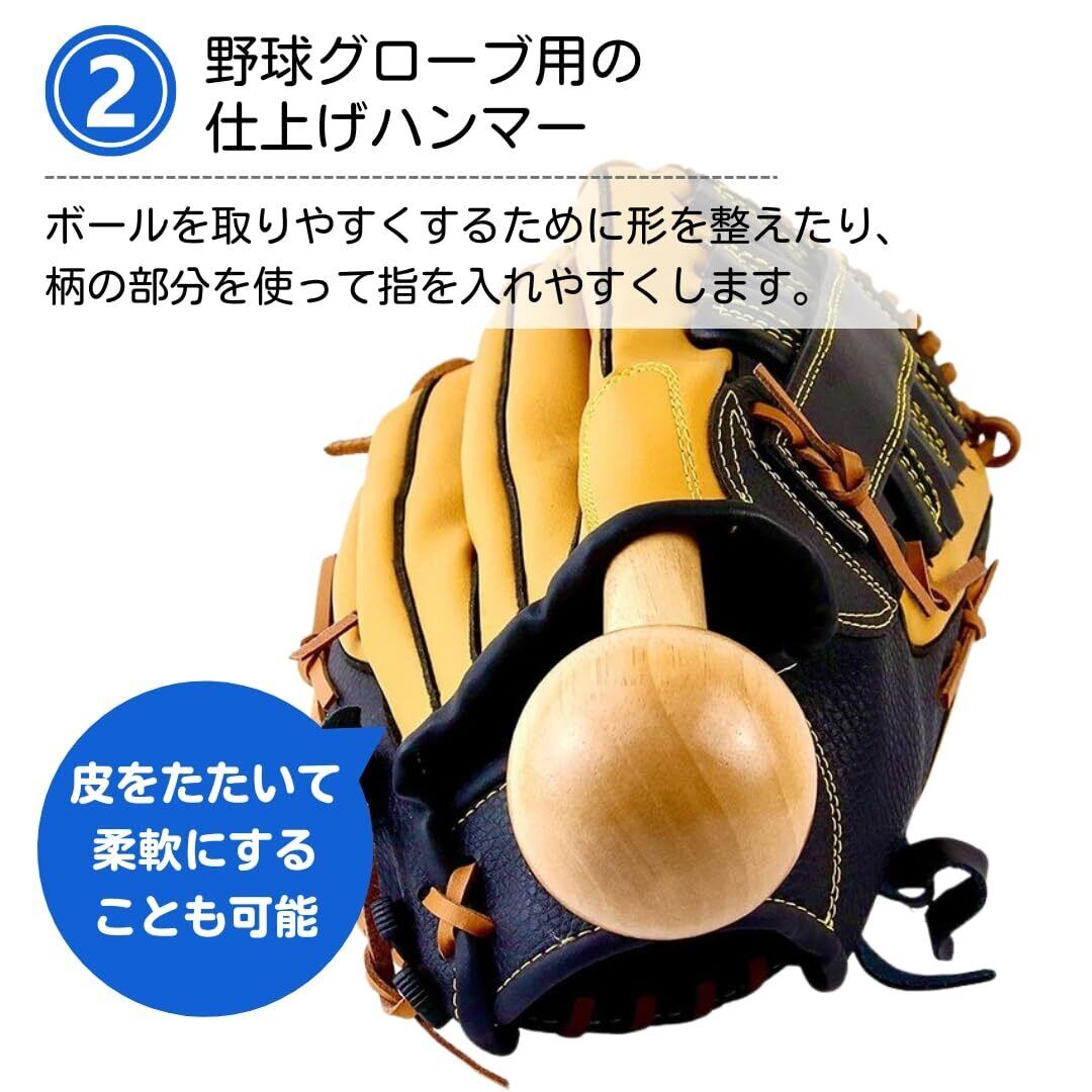 ateena 野球 グローブ 手入れ 型付け グローブホルダー グラブハンマー 野球道具 グラブ 保形ベルト (仕上げハンマー+保形ベルト×1枚)