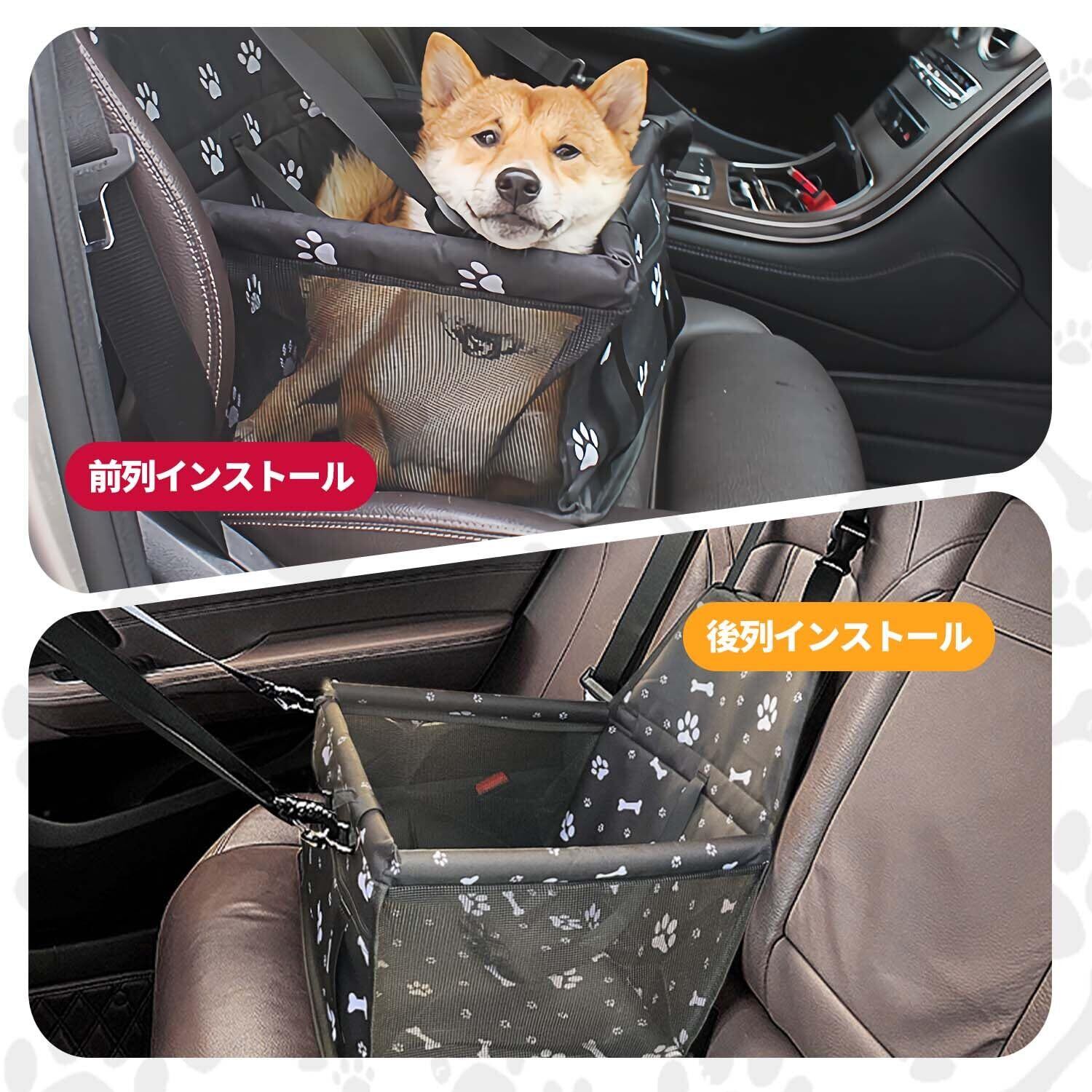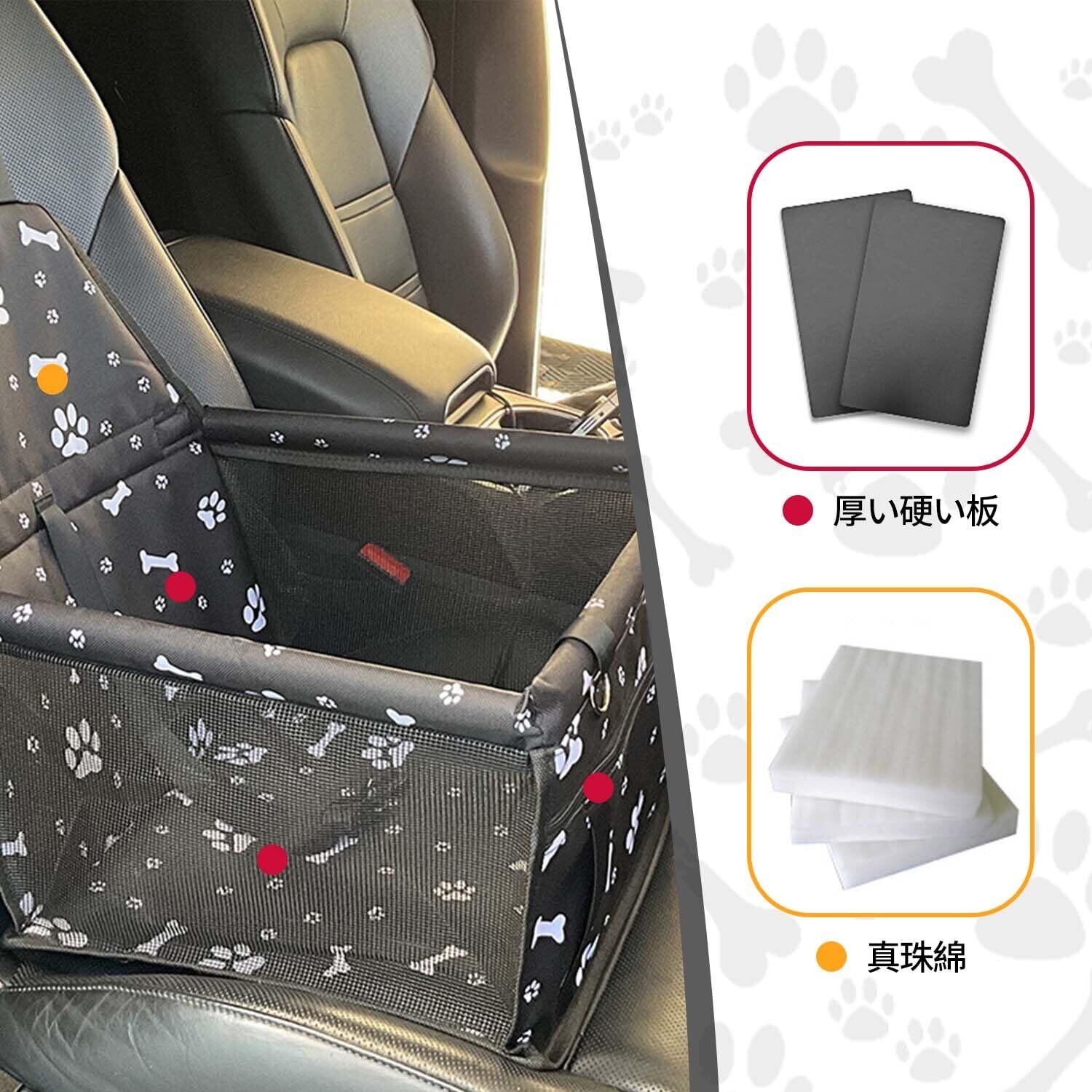 YEZOND 犬 車 シート 後部座席 ペット用ドライブシート 防水 持ち運び 全車種汎用品 安全ベルト付き (爪足印刷-黒, 40*32*22)