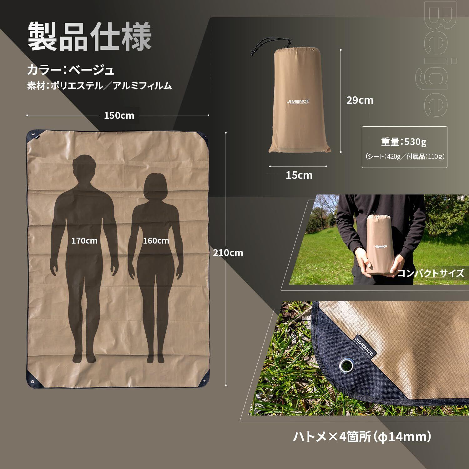 ● 商品名:JIMENCE(ジーメンス)レジャーシート グランドシート アルミ防水 150×210cm 収納袋付き 1~3人用 (ベージュ)