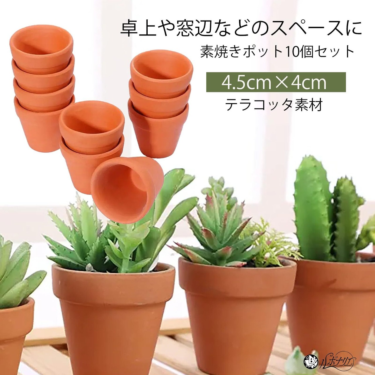 小さなサイズで、卓上や窓辺などのスペースに最適な素焼きポットです。10個セットをご用意しましたので、オフィスのデスク周りやリビングルームなど様々な場所の緑化を手軽に行うことができます。