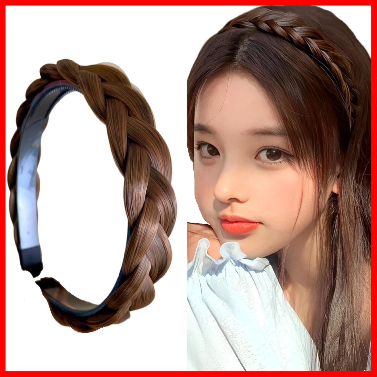 fogman カチューシャ 三つ編み ヘアバンド ヘアアクセサリ かわいい 自然 おしゃれ 前髪 (ライトブラウン)
