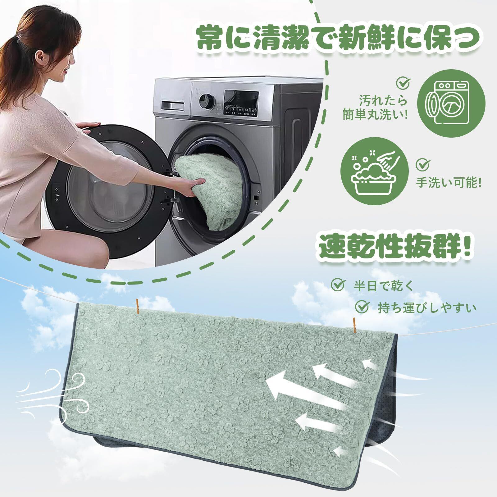 100 回以上再利用可能: 洗濯機で洗えるこの犬 おしっこマットは耐久性に優れ、100 回以上再利用できます。これらは環境に優しい選択肢であり、使い捨てのおむつ替えパッドに代わる環境に優しい選択肢です。当社の洗える犬 おしっこマットを選ぶことは、より環境に優しい地球をサポートし、費用対効果の高い決断をすることを意味します。実際、単位面積あたりで見ると、当社の犬 おしっこマットは使い捨てのおむつ替えパッドより 5 倍安価です。