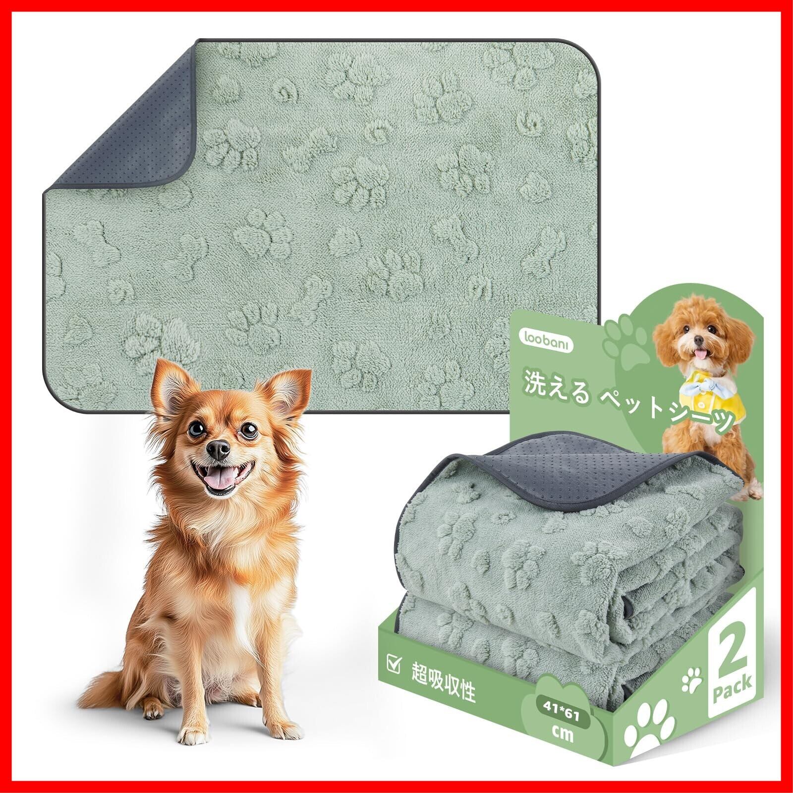 LOOBANI 超吸収 洗えるペットシーツ 漏れ防止 ペットシーツ 洗える 滑り止め おしっこシート ペットシーツ 洗える 丸ごと洗える 速乾 中型 大型 犬・猫 犬用 おしっこパッド 丸ごと洗える エコ 制菌 消臭 介護 四季通用 繰り返し使える (41*61CM, 2, 枚)
