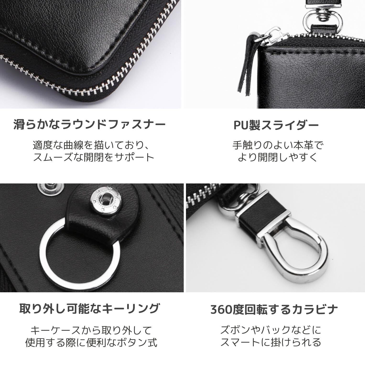 【取り外し可能なキーリング】キーケースから取り外して使用する際に便利なボタン式【360度回転するカラビナ】ズボンやバックなどにスマートに掛けられる