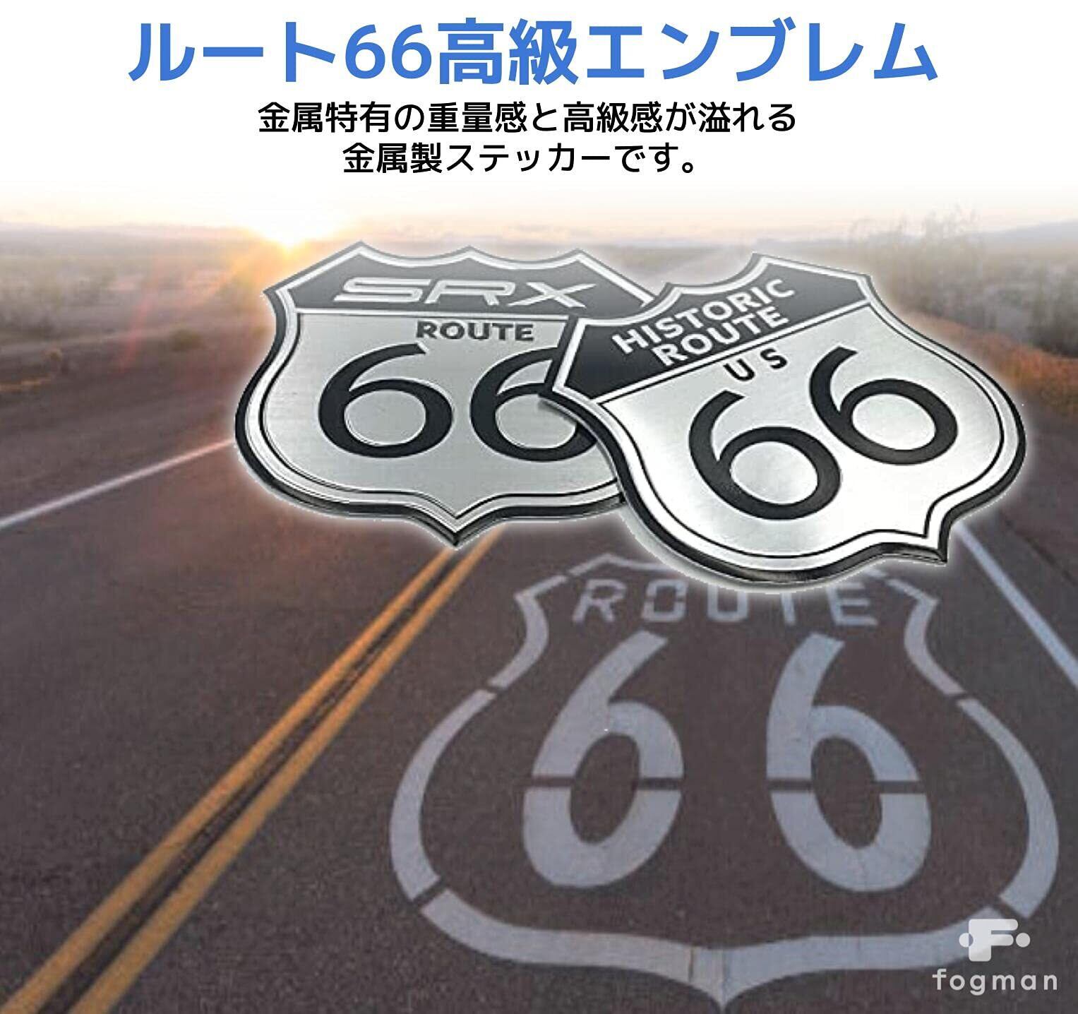 fogman エンブレム ルート66 ステッカー 車 バイク アルミ製 レトロ デカール Route66 グッズ 2個セット
