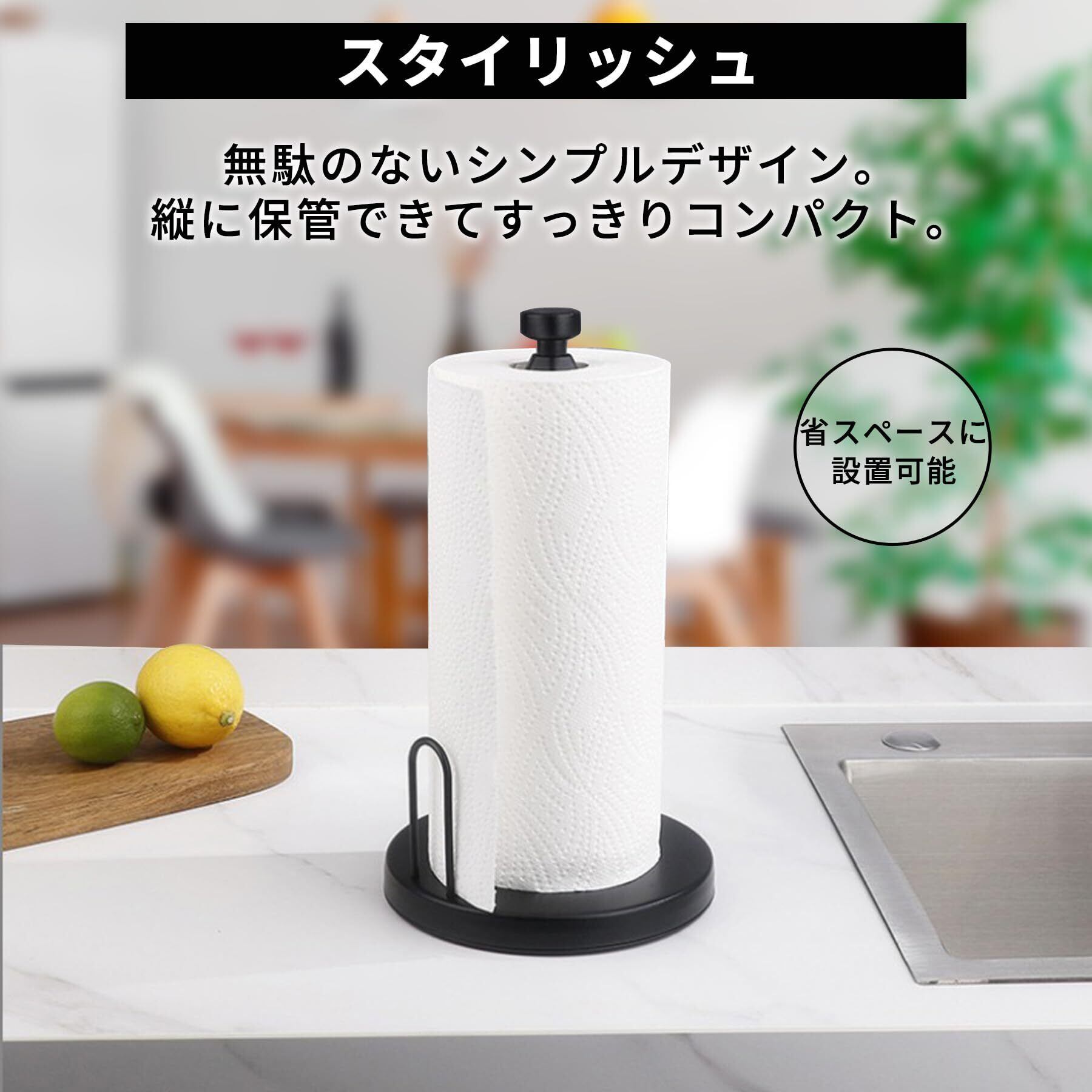 【製品情報】キッチンペーパーホルダー 素材:ステンレス製 カラー:ブラック・黒 シルバー・銀 サイズ:土台17.7㎝・高さ28.6㎝・中心3㎝ 重さ:約400g
