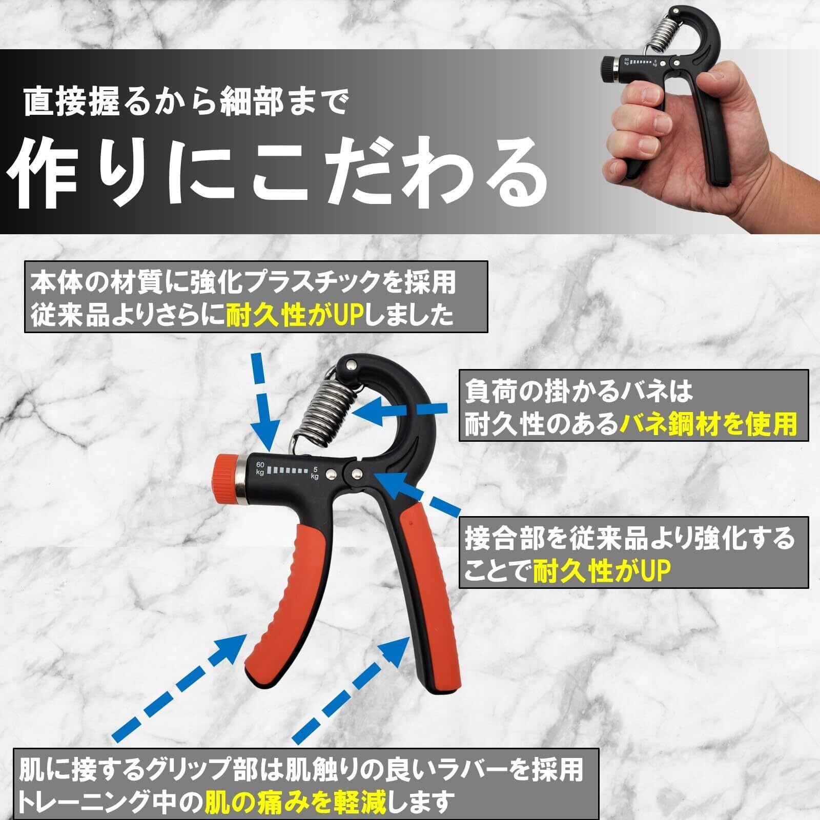 【耐久性UP】本体を強化プラスチック、バネ鋼を採用し耐久性を向上させました。また直接触れるグリップにラバーに装着することでトレーニング中の肌へのストレスを軽減しました。