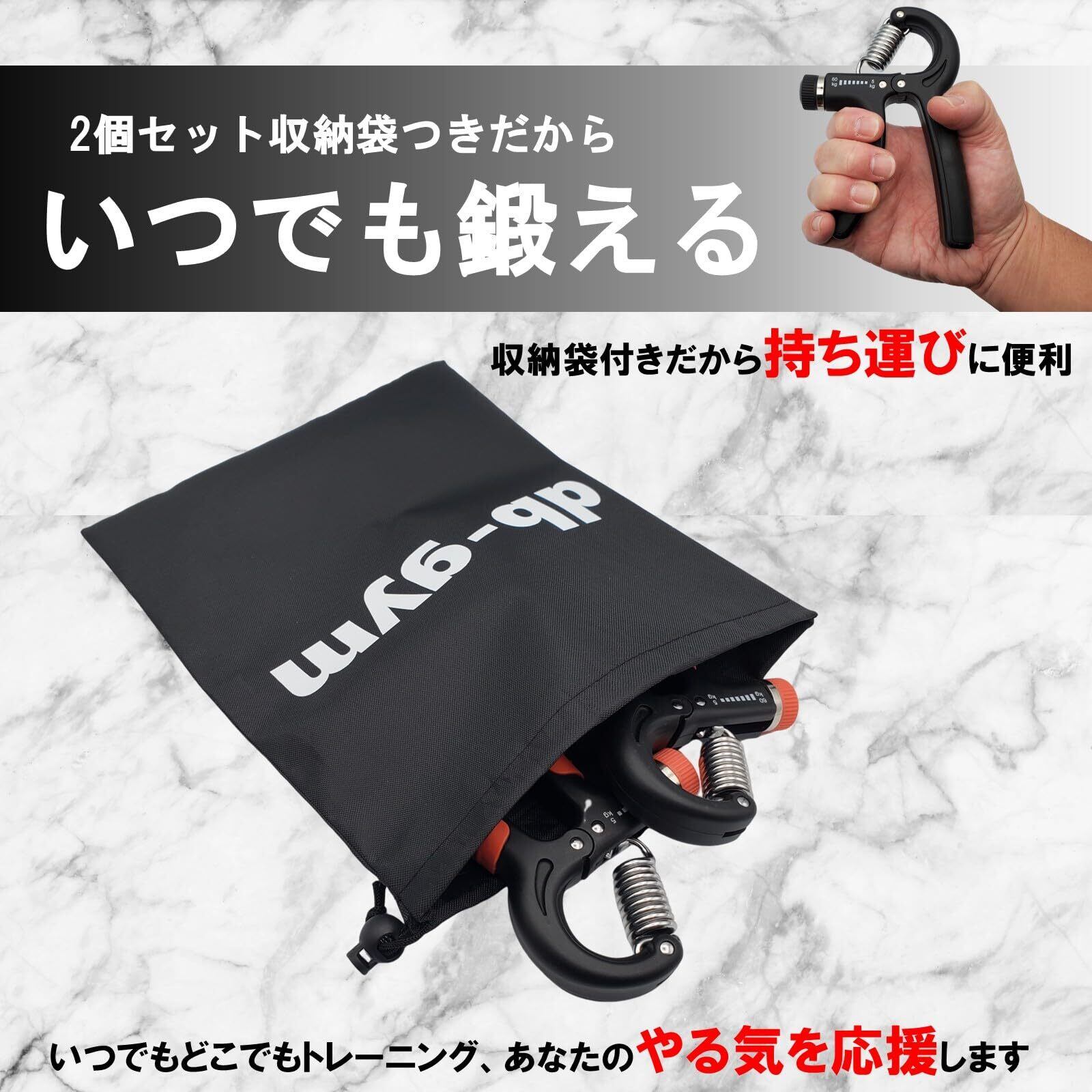 db-gym ハンドグリップ 2個セット パワーグリップ 手軽に鍛える 負荷が選べる 場所を取らない 握力強化 筋トレ器具 収納袋付き