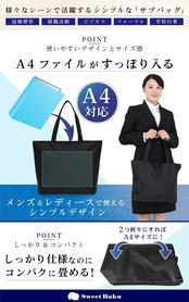 ● 商品名:SweetBaku サブバッグ A4対応 黒 軽量 折りたたみ トートバッグ ビジネスバッグ