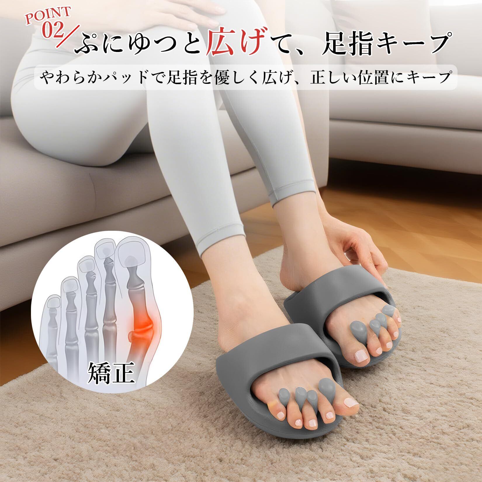 履くだけで✨美脚・姿勢改善・ヒップアップ✨が目指せる5本指ダイエットスリッパ。シリコン製トゥパッドで足指を広げて血行促進、足裏を心地よく刺激する足ツボ スリッパ。手のひらサイズの半底構造で、ダイエットスリッパ 室内として日常の体幹トレーニングにも活躍。歩くだけで自然と引き締め、痩せるスリッパとして美しいシルエットをサポート。足裏アーチを支える構造でスリッパ 健康志向の方にもおすすめ。猫背やO脚にもアプローチする姿勢改善スリッパで、立ち姿も美しく。軽量設計で疲れにくく、ダイエットスリッパ レディースとして女性にも人気です。