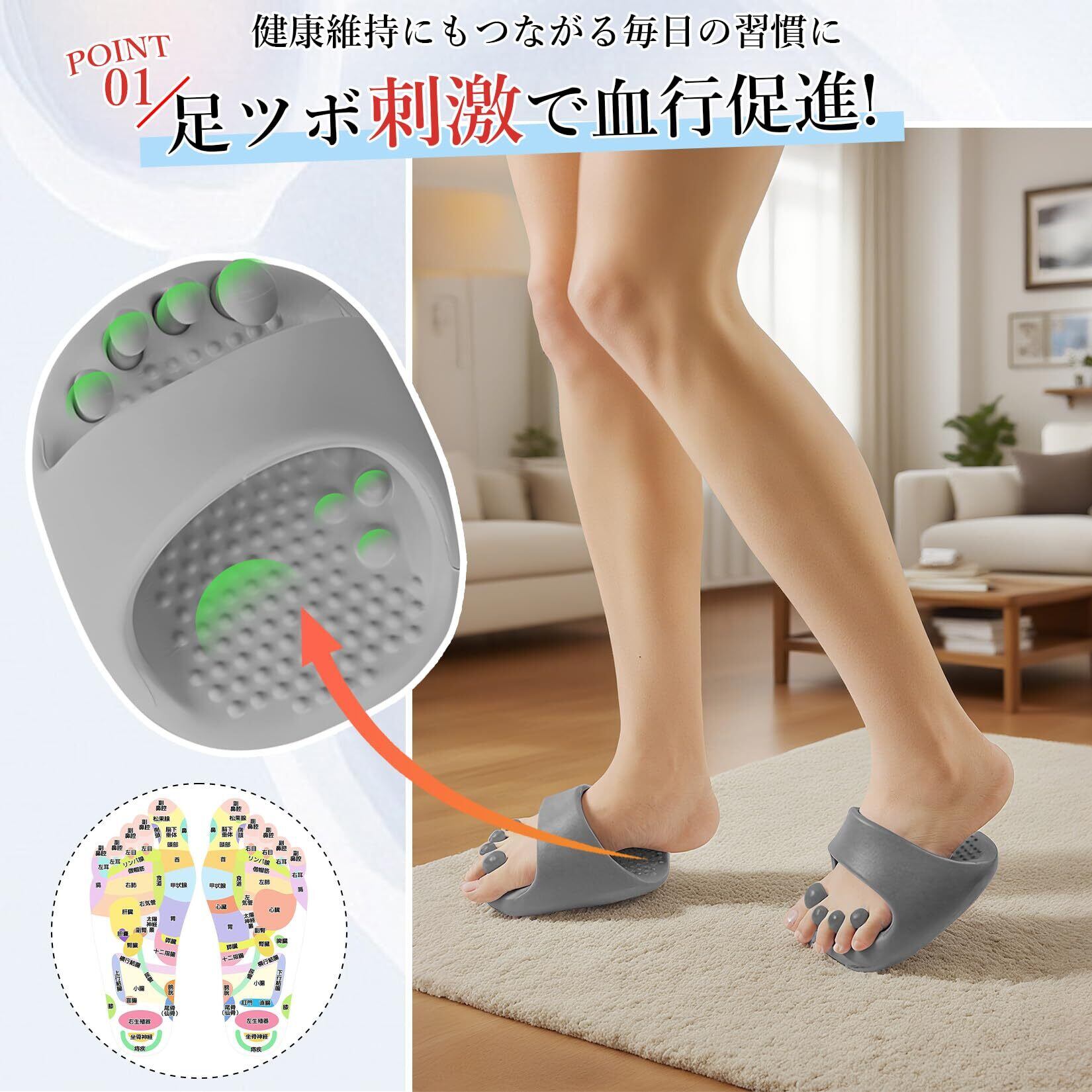 【一日の疲れをリフレッシュする効果を体感】毎日忙しく働く方にこそおすすめしたい、心身を癒すスリッパ 健康タイプ。履いた瞬間からリラックス効果を実感でき、足指のストレッチ機能と足裏の心地よい刺激が、たまった疲れをやさしくほぐします。痩せるスリッパとしての効果もあり、軽やかな毎日をサポートします。おうちでのセルフケアにぴったりのダイエットスリッパ レディース。