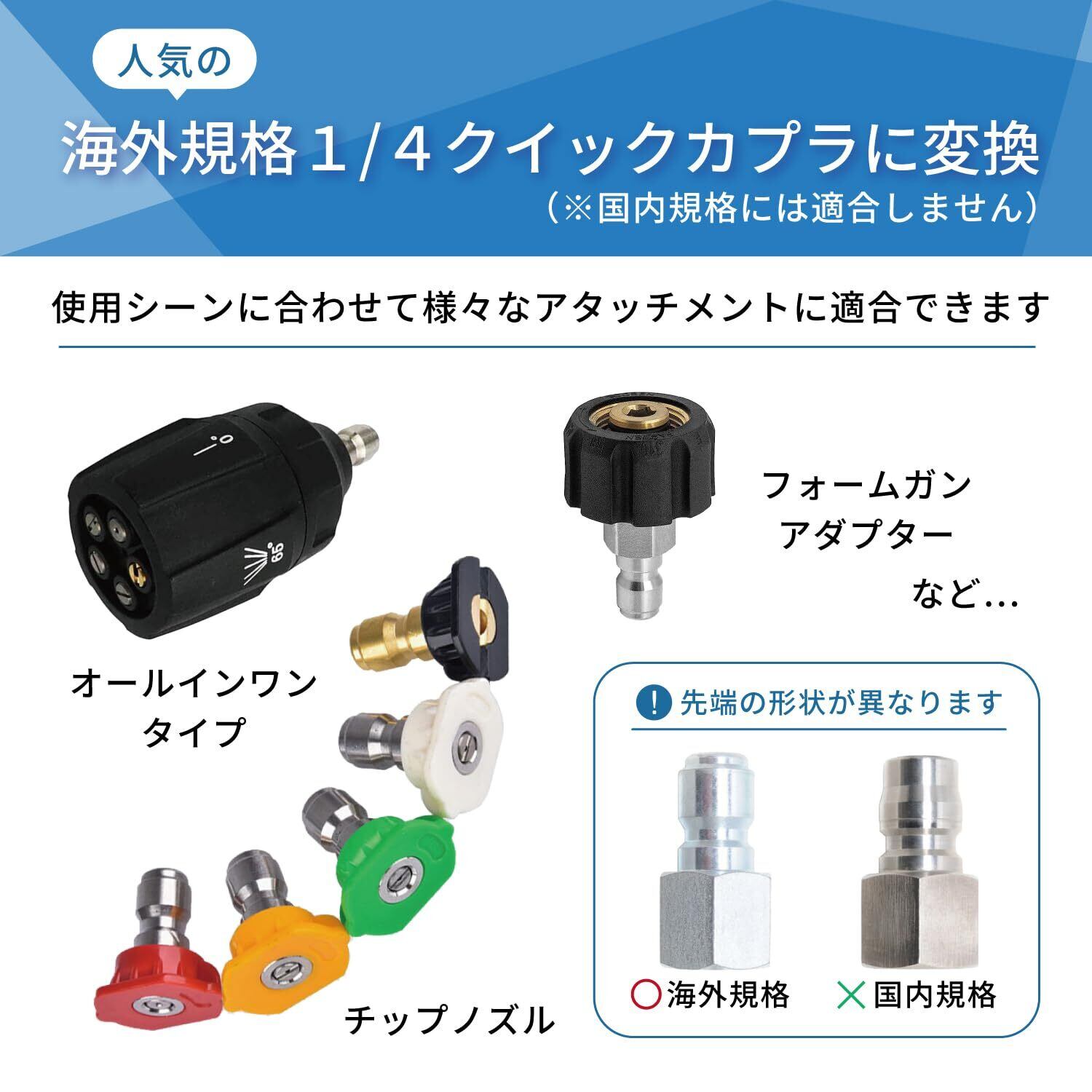 【簡単接続で手間いらず!】 : クイックアタッチメント形状を活かし、工具なしで素早く接続可能です。洗浄機を使用する際のストレスを軽減し、操作性が向上することで、気軽に作業に取り組むことができます。