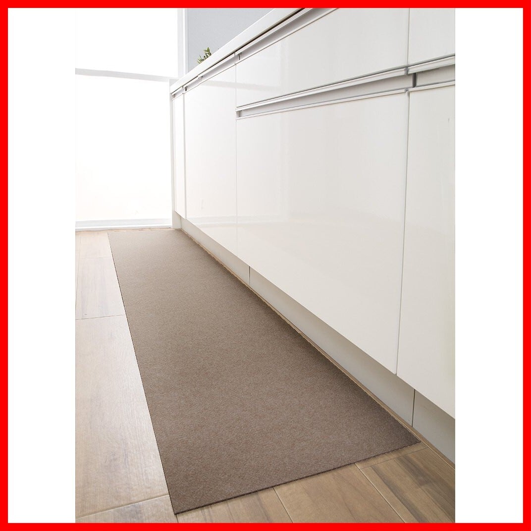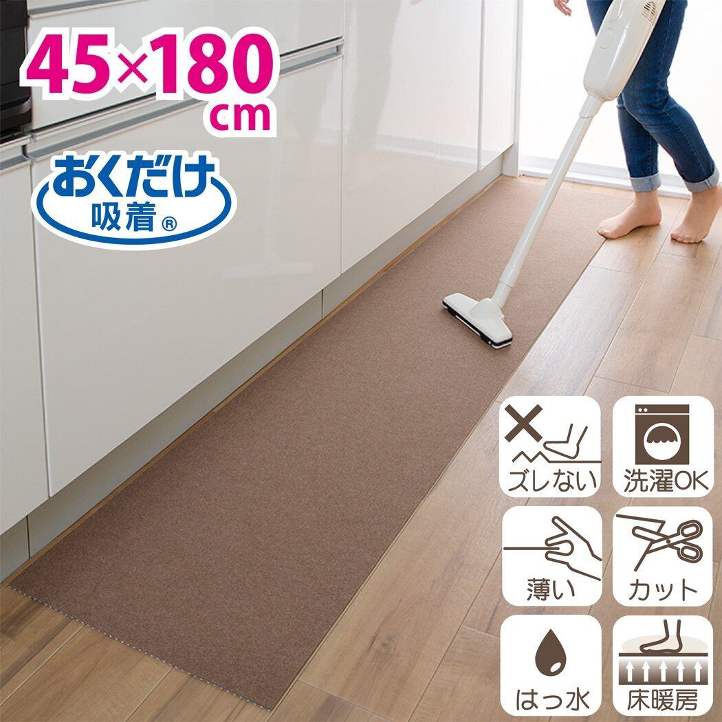 【日本製 撥水 消臭 洗える】サンコー キッチンマット ずれない 台所マット ロング 45×180cm ブラウン おくだけ吸着 KP-21