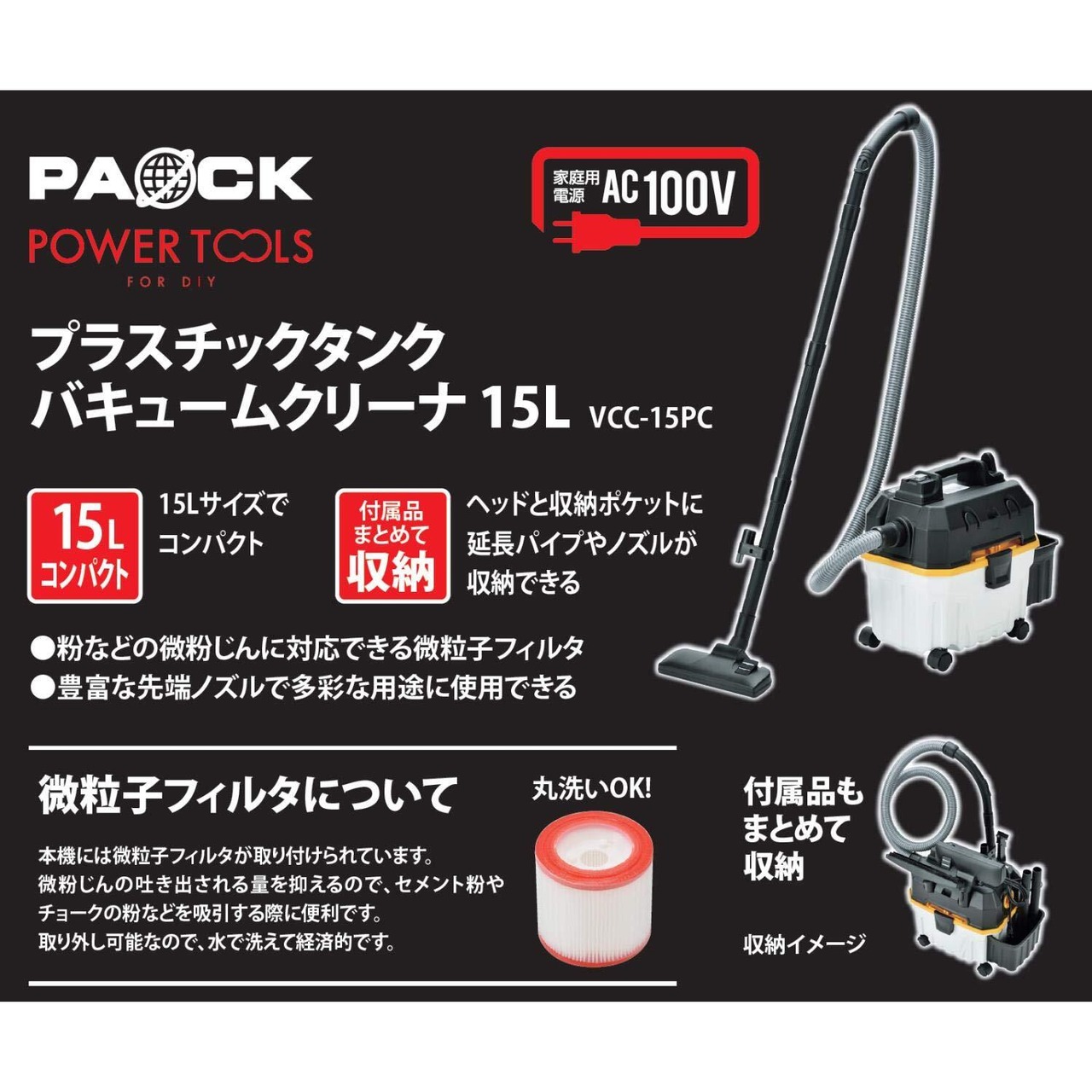 「この「パオックのプラスチックタンク バキュームクリーナー VCC-15PC」で、掃除を快適に、そして効果的に行う新しいスタイルを始めてみませんか!」
