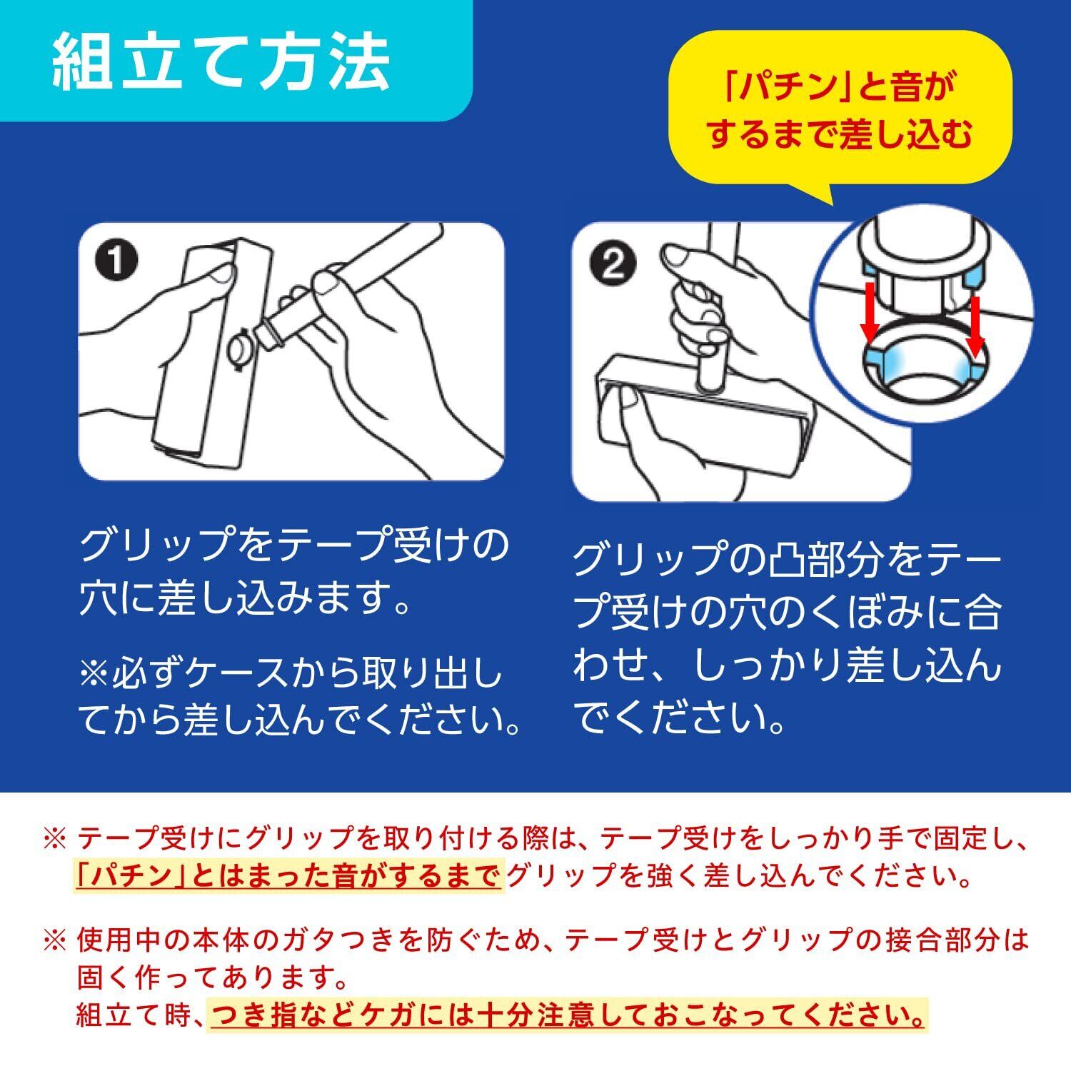 テープ受けにグリップを取り付ける際は、テープ受けをしっかり手で固定し、「パチン」と、はまった音がするまでグリップを差し込んでください。