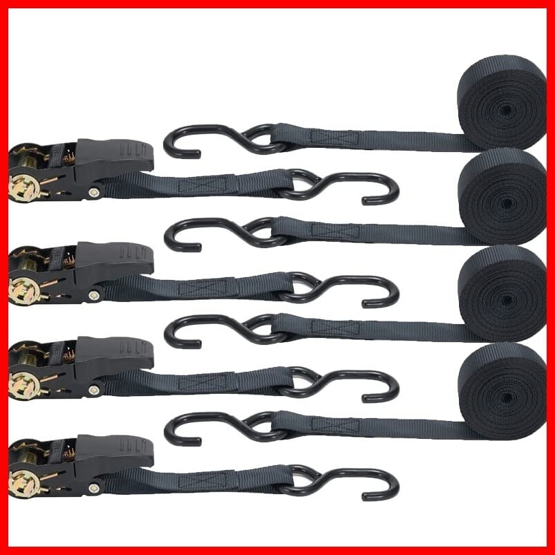 FFOGG ラチェットベルト タイダウンベルト 2m 幅2.5cm 4本セット 荷締めベルト 破断荷重800kg/本 最大使用荷重225kg ラッシンググベルト タイダウン 引越し 運搬用 ナイロン オートバイ対応 ブラック | hananoki