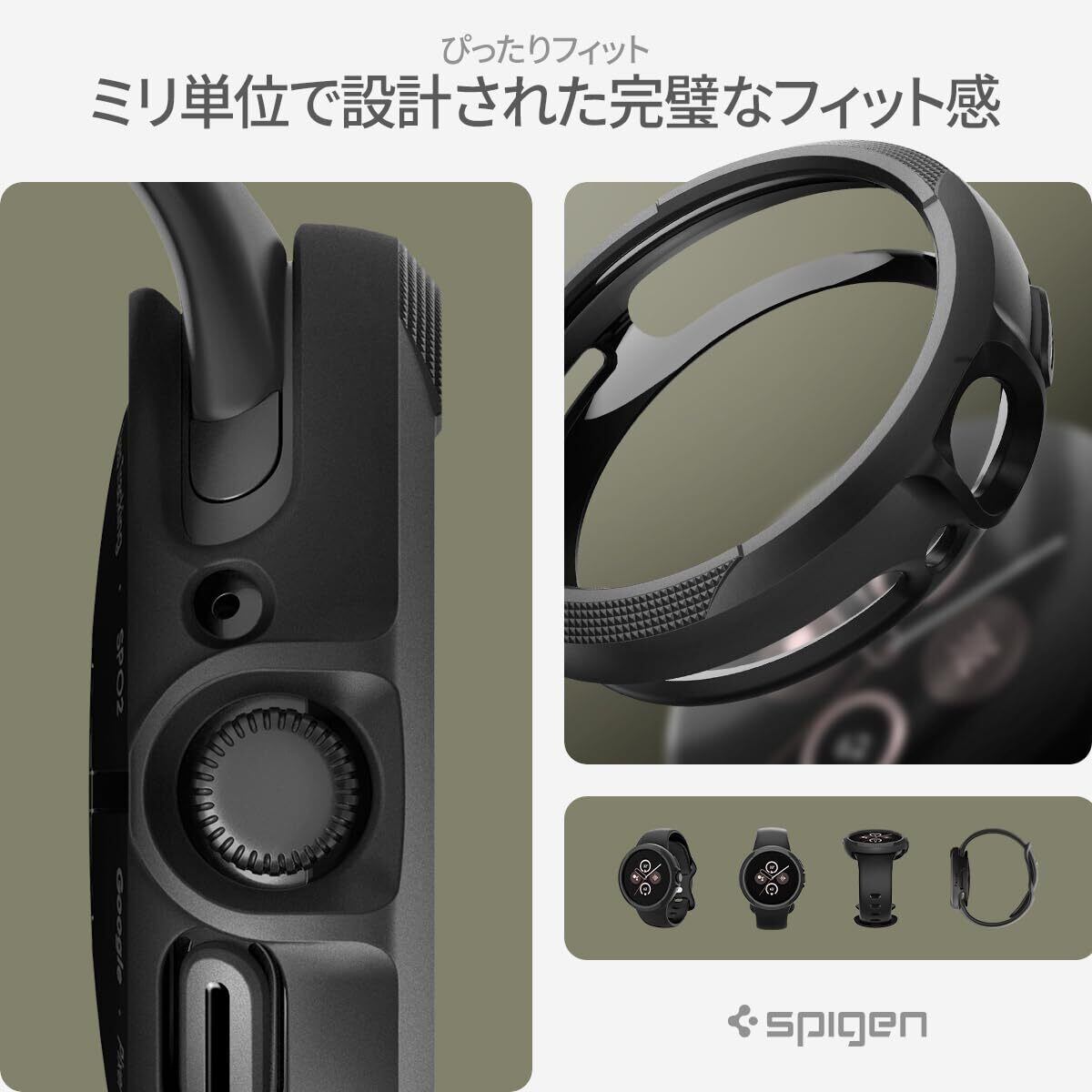Spigen Google Pixel Watch 3 / 2 / 1 41mm ケース 落下 衝撃吸収 簡易な取り付け シンプル スリム 軽量 すり傷 防止 保護カバー リキッド・エア ACS03073 (マット・ブラック) | hananoki