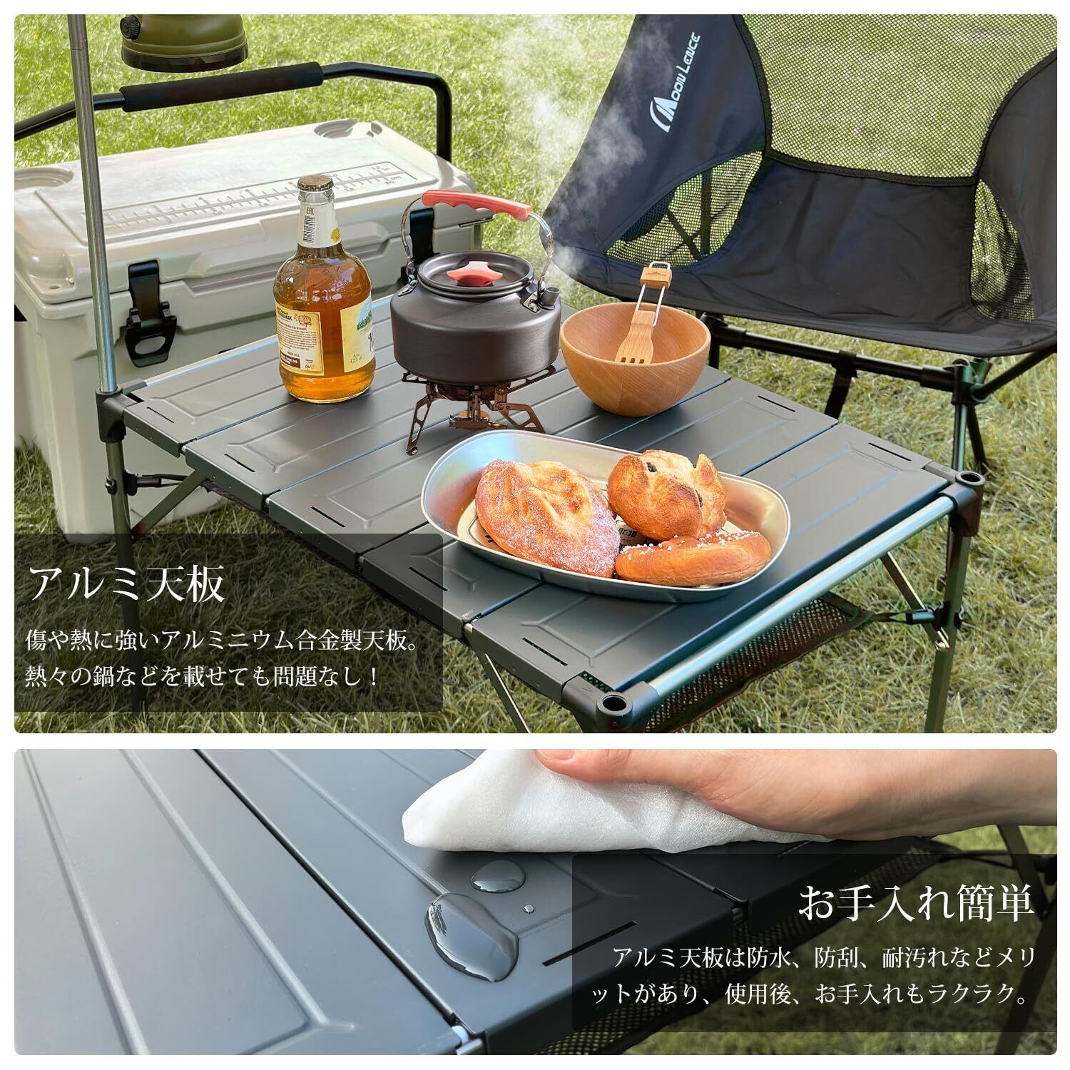 MOON LENCE キャンプ テーブル アルミニウム合金 ロールテーブル ランタンハンガー付き アウトドア ハイキング BBQ 折りたたみ式 コンパクト 超軽量