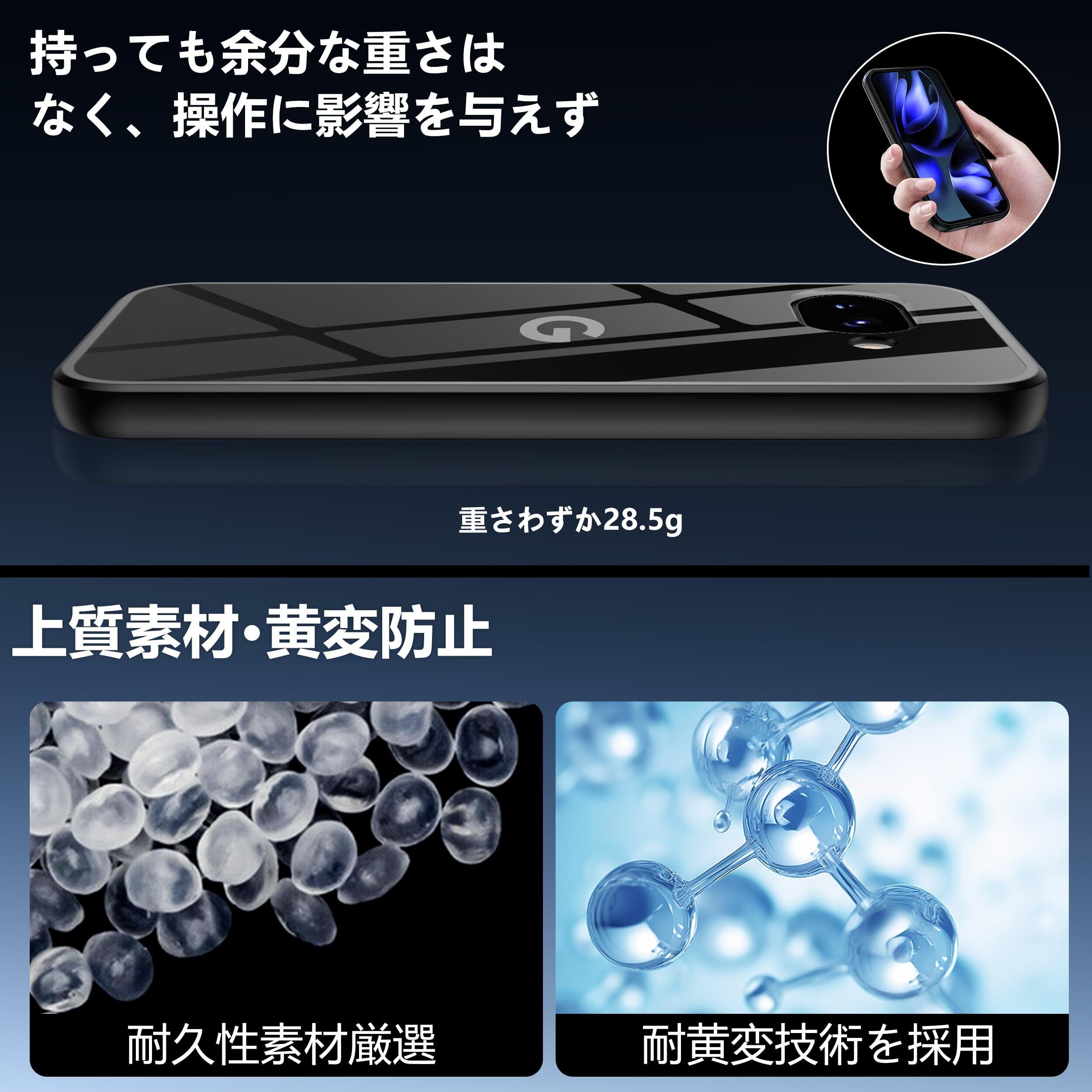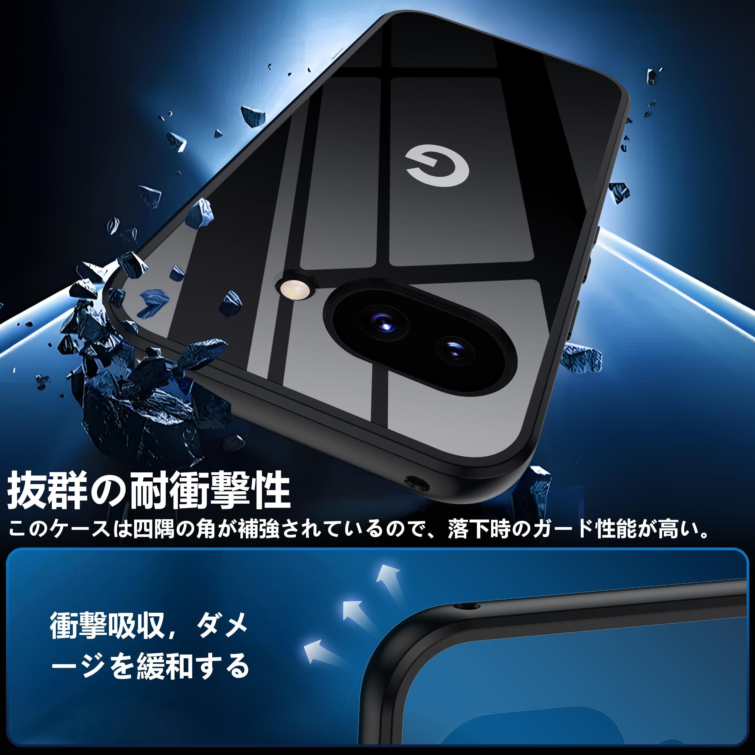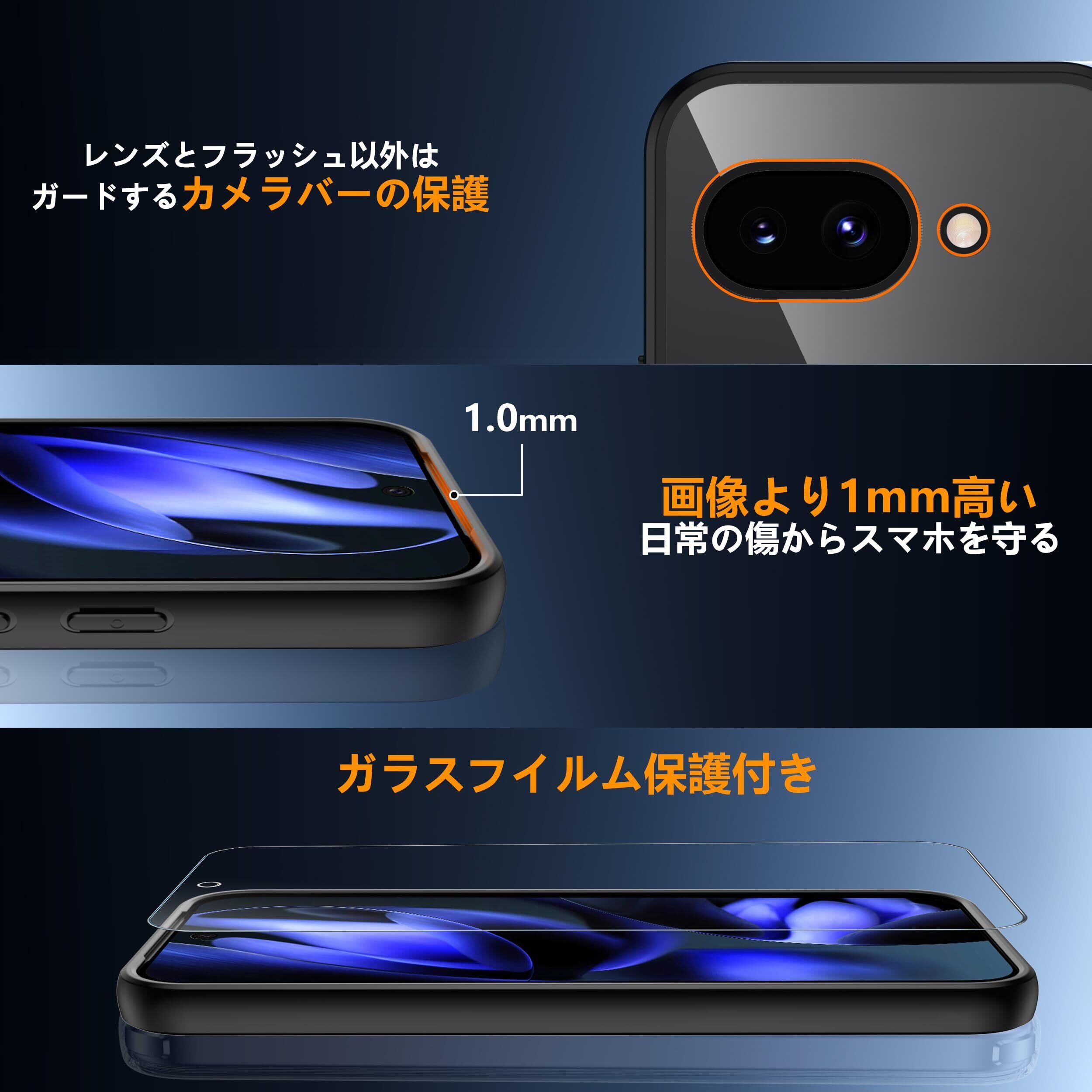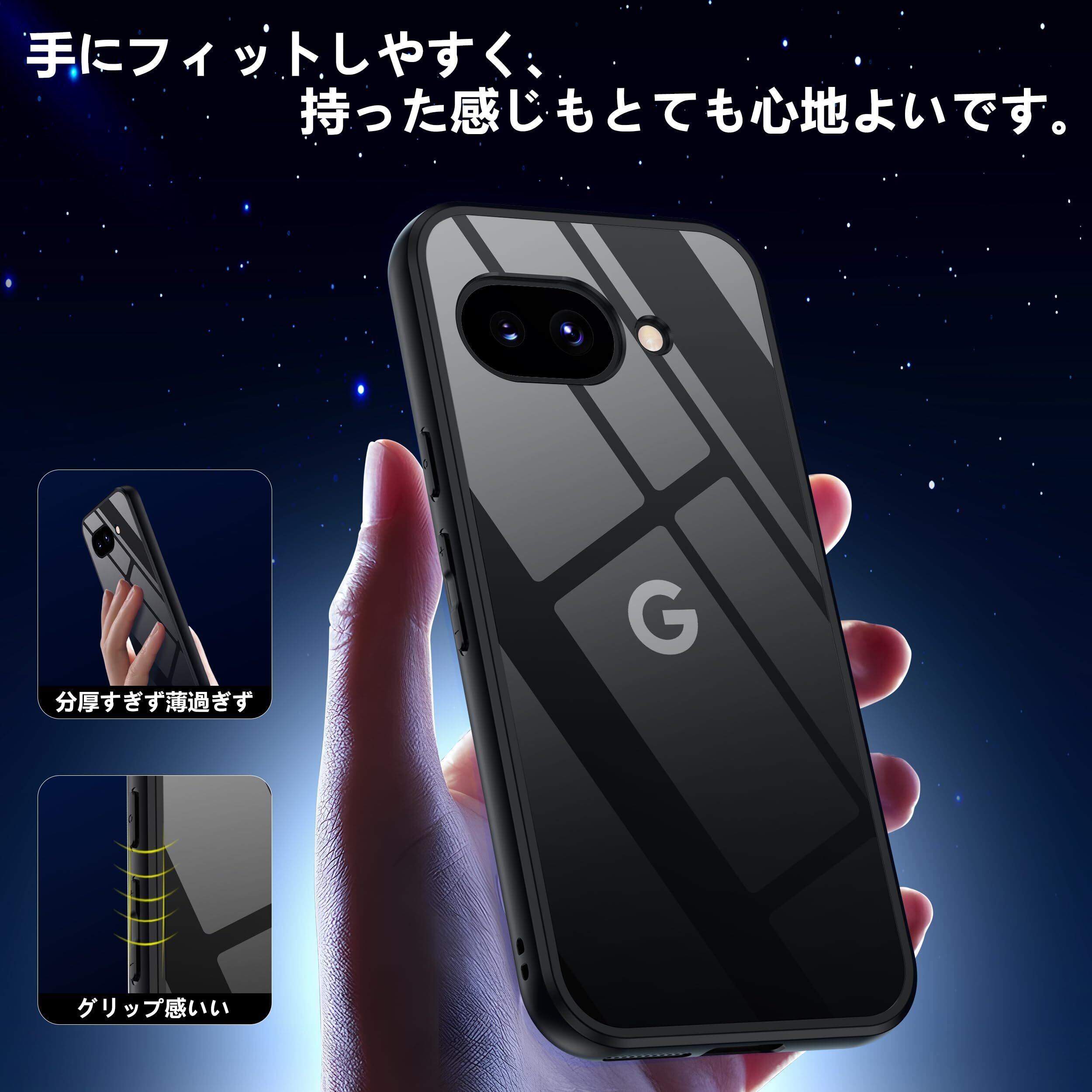 Google Pixel 9a ケース ブラック 黄変防止 グーグルピクセル9a用 耐衝撃 ガラスフイルム保護付き 指紋防止 落下防止 耐久性 ストラップホール付 薄型 軽量 ソフトカバー ワイヤレス充電対応 googleピクセル9a用ケース | hananoki