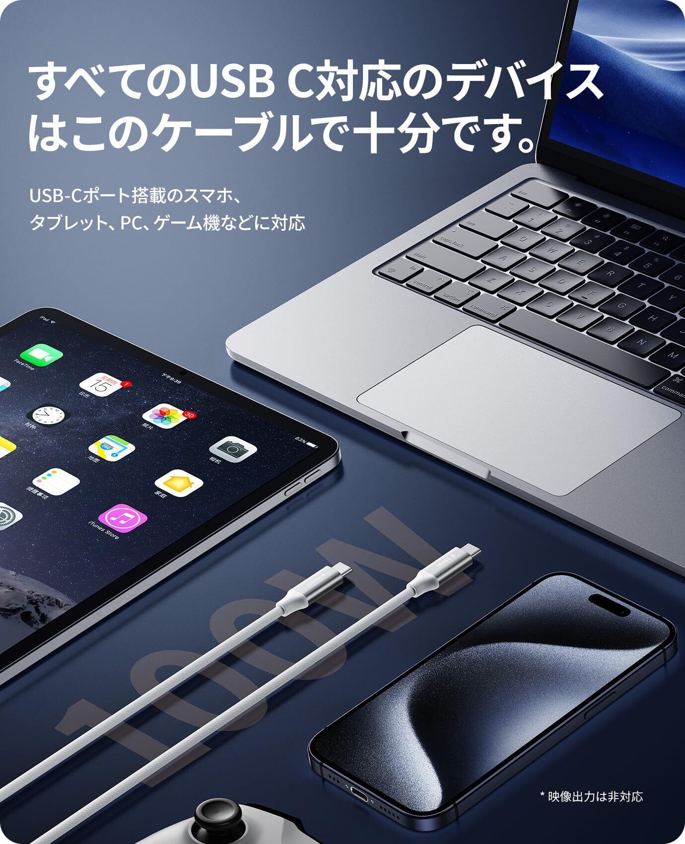 ● 特徴:PD対応、100W/5A急速充電、1mの長さ、iPhone16/15シリーズ、MacBook、iPad Pro、GalaxyなどのType C機種に対応