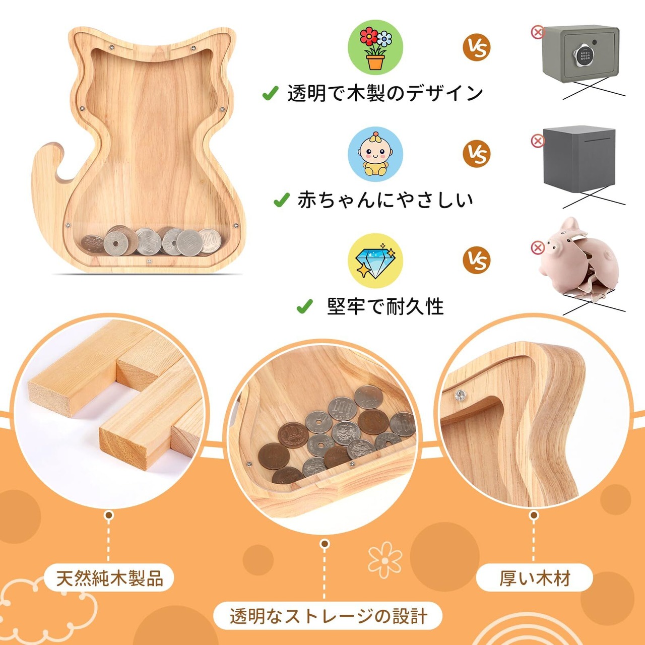 【天然木材を使用した高品質な工芸品!】 : この貯金箱は、質感を大切にした無垢の木を使用しており、どんなお部屋にもマッチする原木色仕上げです。天然素材の温もりを感じつつ、長く愛用いただけるアイテムです。大人も子供も安心してご使用いただけます。