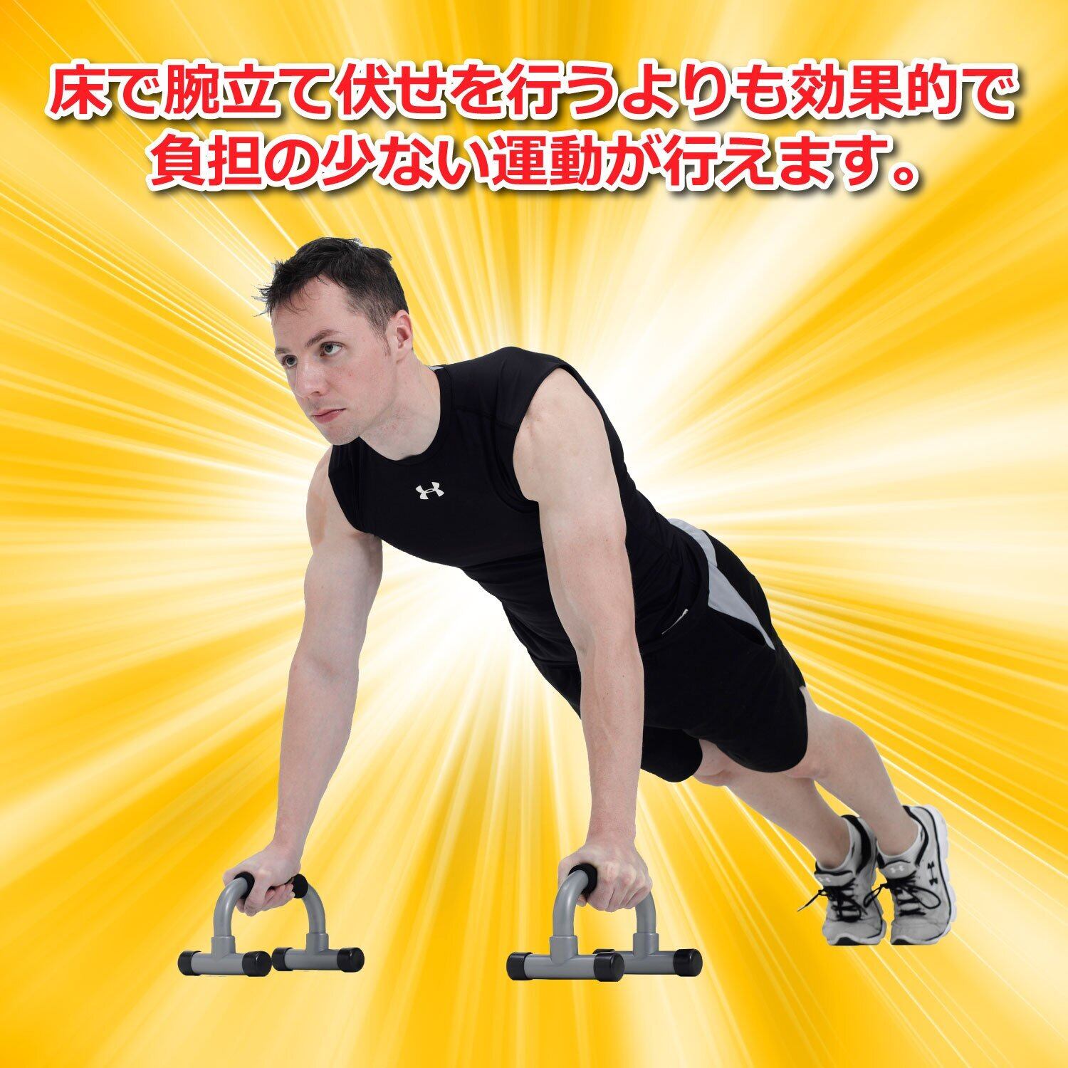プッシュアップバーは、腕立て伏せをより効果的に、より負担少く行うための運動器具。