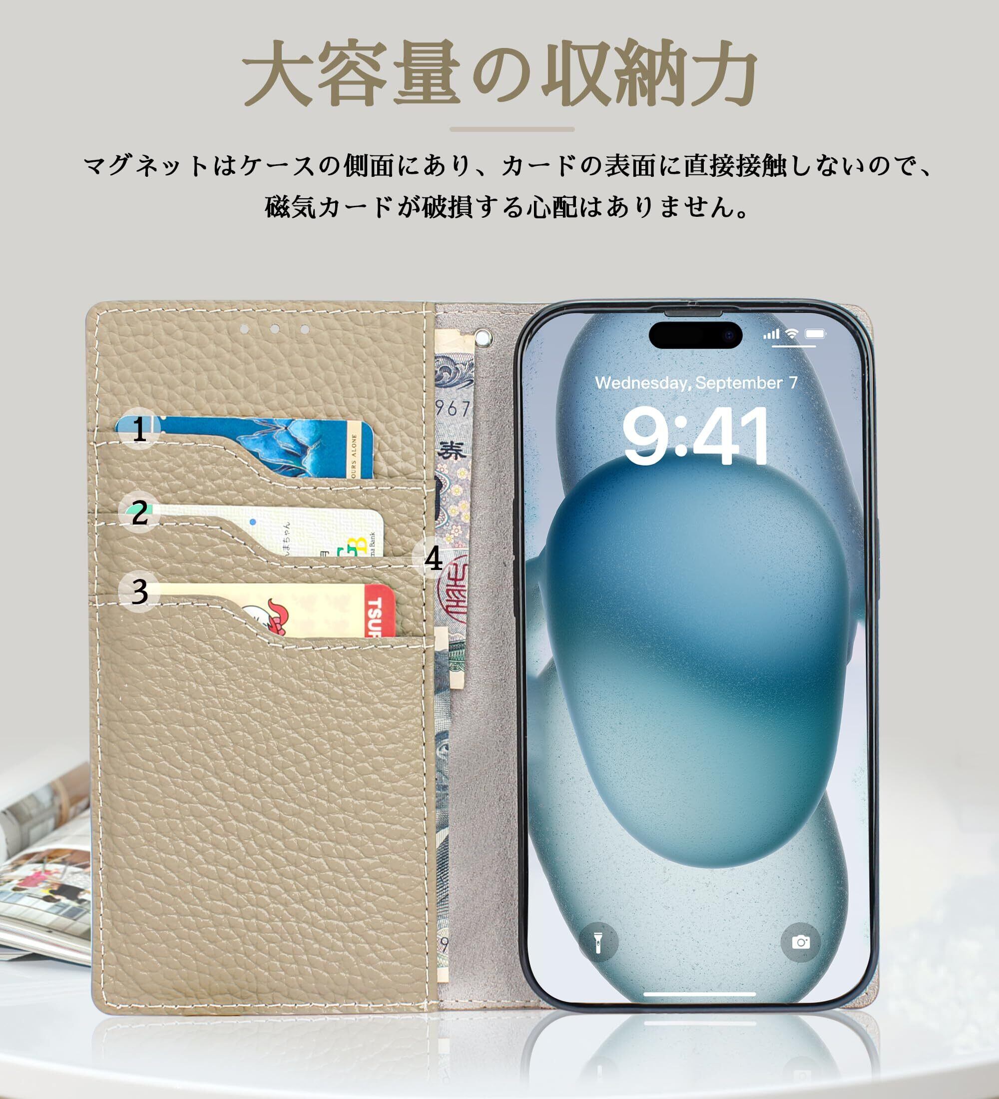 【性能抜群】横置きスタンド機能が付いて、好きな角度で動画鑑賞や読書などを楽しめます。内側には三つのカード入れとフリーポケットが付き、名刺や定期券の収納に優れています。そして、簡単に開け閉めができるから、片手で開きたい方にもとても便利です。