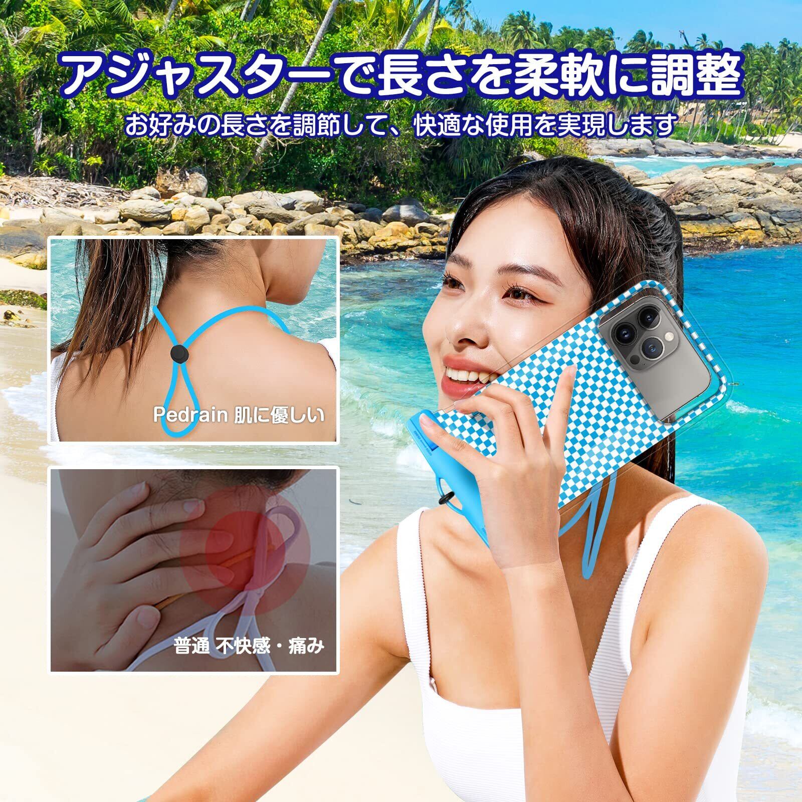 【ストラップ付き・様々な場面で役立つ】 首から掛けて長さを自由に調節できる専用ストラップ付き、柔らかい素材で長時間着けても首に負担をかけない優しい心地を実現します。雨の日、温泉、野外ライブ、お風呂、プール、キッチン、海辺、スキー、釣りなどいろいろなシーンで大活躍。防塵、耐寒、耐傷、耐圧に優れて旅行に欠かせない宝物です。 シャッターを押して、忘れられない美しい瞬間を捉えましょう。