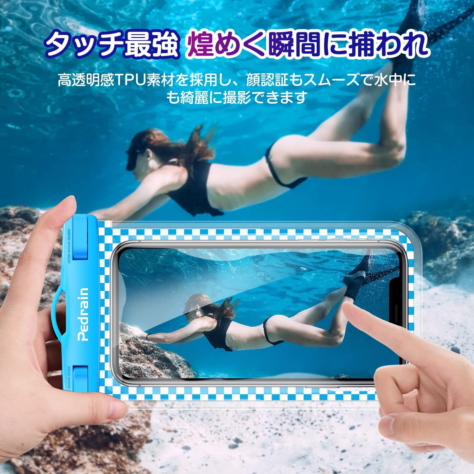 【超高透過率・スムーズタッチ・顔認証可】 携帯防水ケースは最新高透明度TPU 素材で作られており、透過率は 99% 以上で、いつでもすべての美しい瞬間を捉えることができます。柔らかで心地よい質感だけでなく、画面クリアで濡れた防水ケースでもスムーズに操作できます。FaceIDで迅速に認証でき、通話や動画撮影も邪魔なく楽しめます。