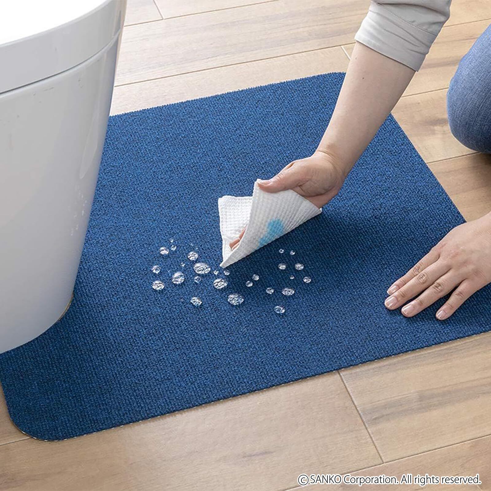 【特徴】撥水加工、カットOK、アンモニア消臭加工、洗濯機可(乾燥機不可)、吸着タイプ(掃除機を掛けても吸いあがらない吸着力)