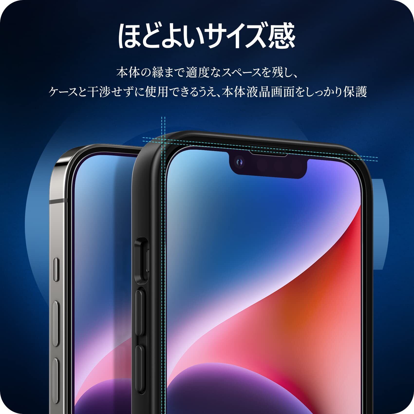 専用デザイン ▏いPhone本体の縁にスペースを残すデザインとなっており、フィルムの剥がれや浮き上がりを防止し、いろんなタイプのケースと干渉せずに快適に使えます。