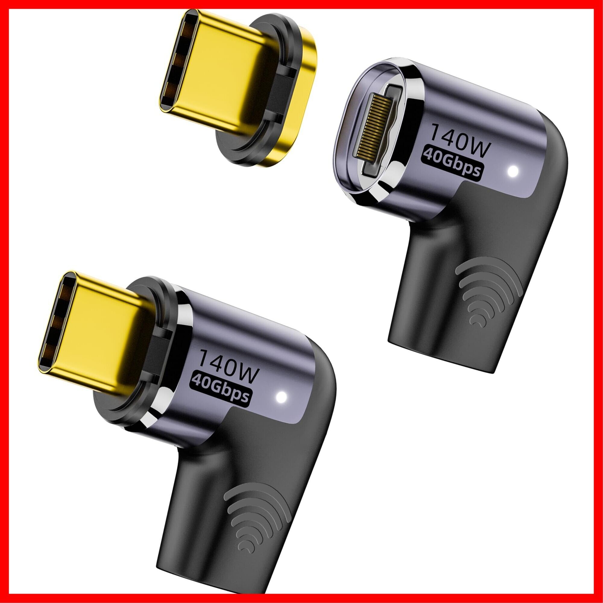 MUXER USB C マグネット アダプタ L字、40Gbps USB4高速データ転送、140W PD急速充電、4K 120Hz / 8K 60Hz HD映像信号伝送、USB4.0 Type-C マグネット、タイプCデバイス対応 (140Wアダプタ2個) | hananoki