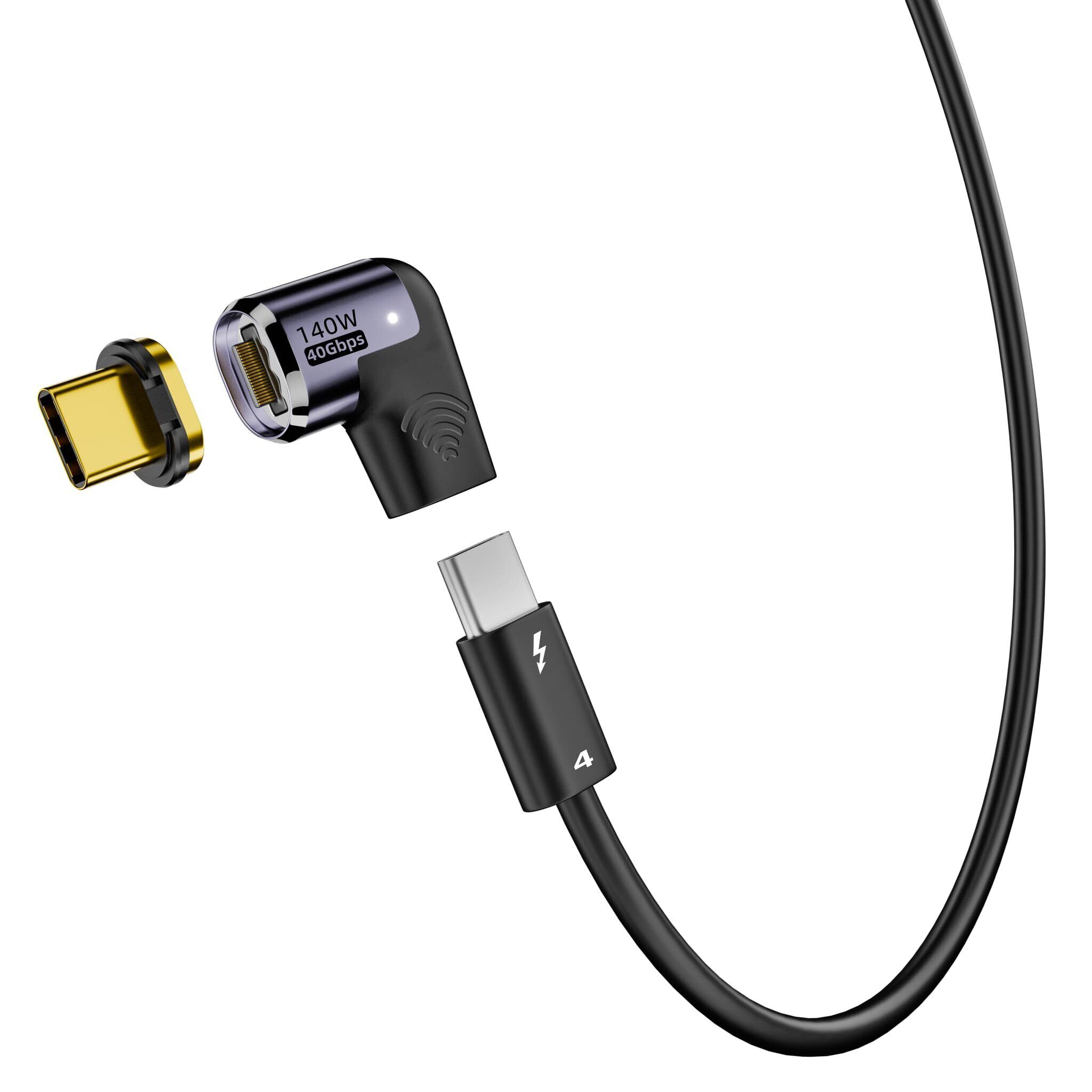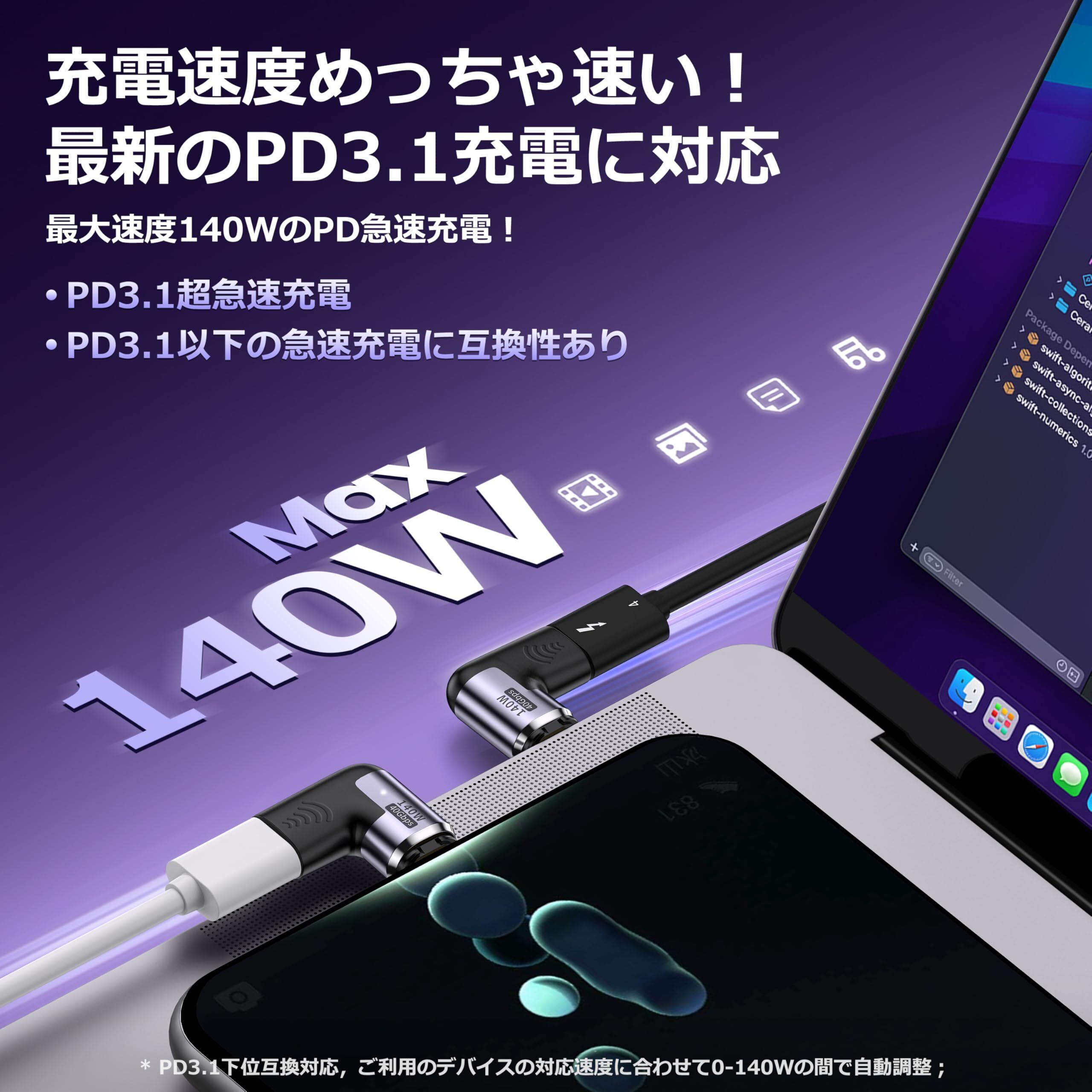MUXER USB C マグネット アダプタ L字、40Gbps USB4高速データ転送、140W PD急速充電、4K 120Hz / 8K 60Hz HD映像信号伝送、USB4.0 Type-C マグネット、タイプCデバイス対応 (140Wアダプタ2個)
