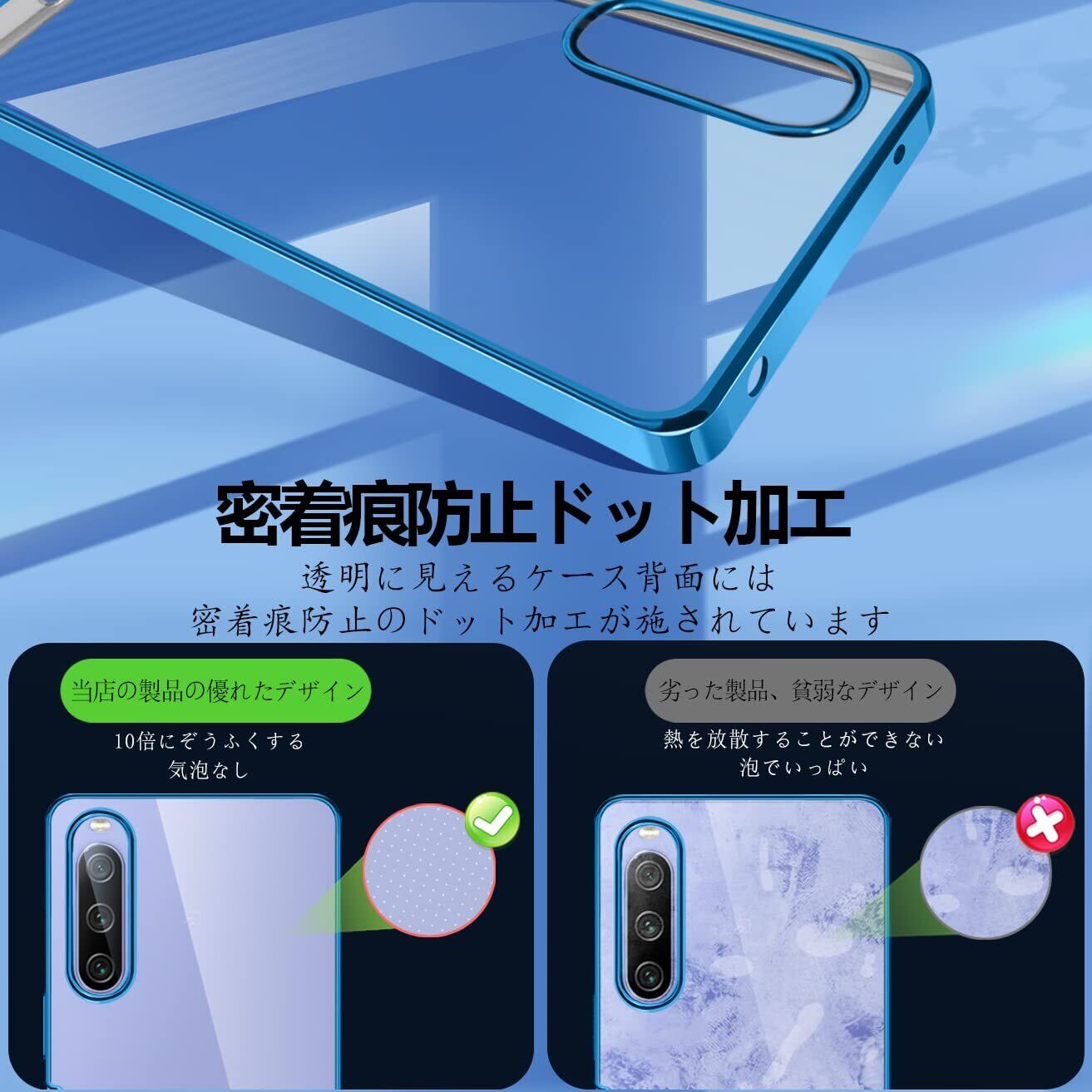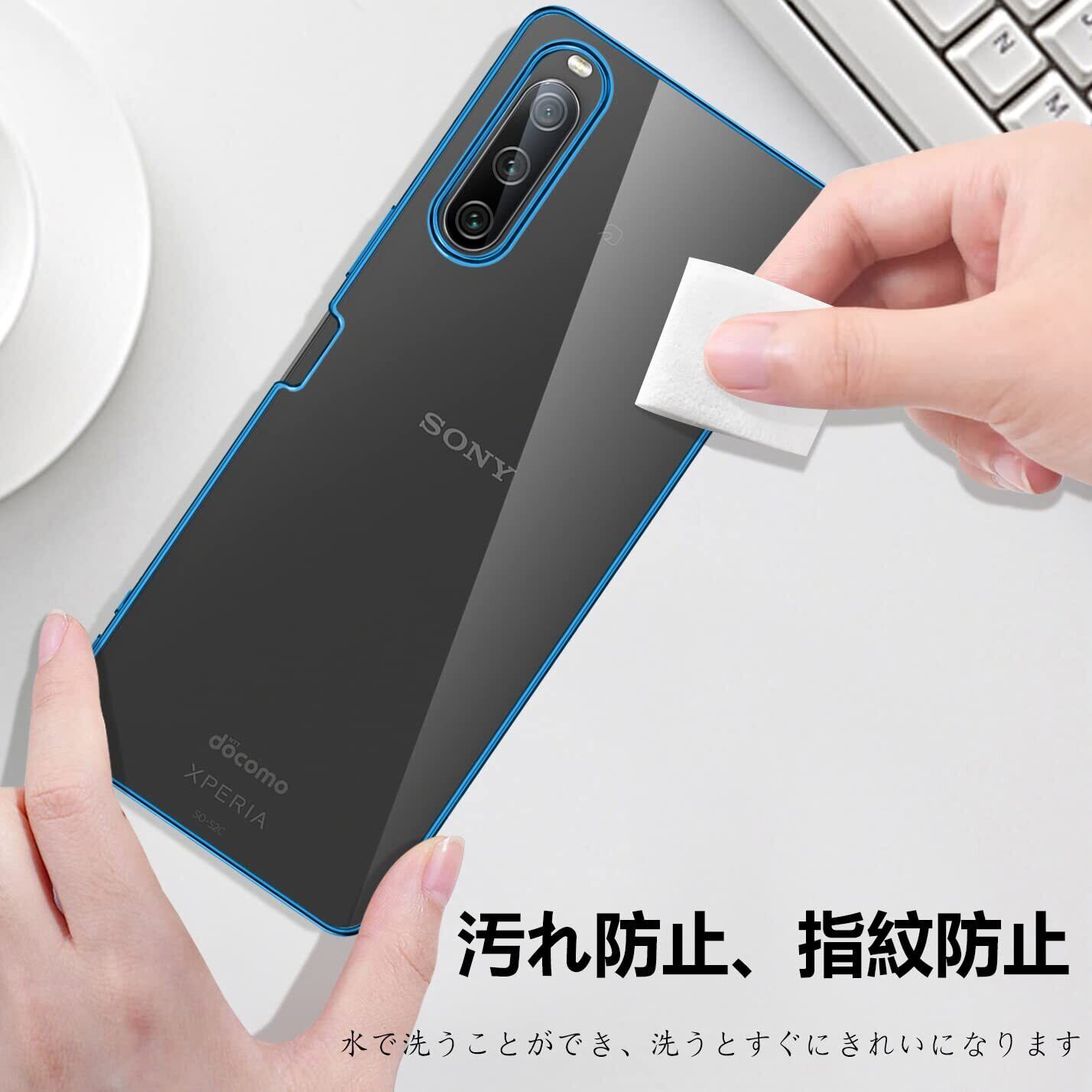 Sony Xperia 10 IV ケース クリア SO-52C SOG07 透明 ガバー エクスペリア10IV スマホケース 耐衝撃 メッキ加工 TPU ストラップホール付き スリム 薄型 擦り傷防止 黄変防止(ブルー)