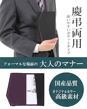 【男女両用 オリジナルカラー】 ふくさ「黒×紫紺」の2色使いが、現代的でシャープな印象。 当社だけのオリジナルカラーでご用意しています。 格調高く、おしゃれな色使いで、男性、女性を問わず、慶弔どんな場面でも安心してお使い頂けます。
