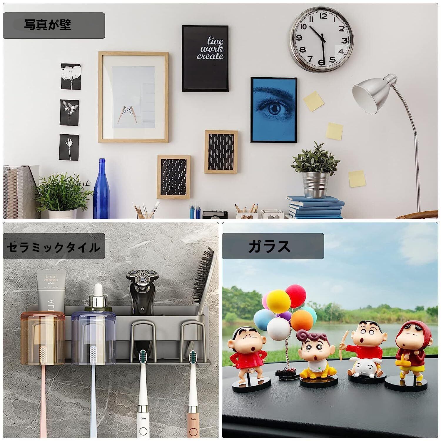 【使用簡単】壁や家具や装飾品などに使える。利用する両面テープは強力な支持力と粘着性、取り除きも非常に簡単で、ドライヤーを使って、ビスコースを加熱し柔らかくなってから剥ぎます。家具にも全然ダメージしません。