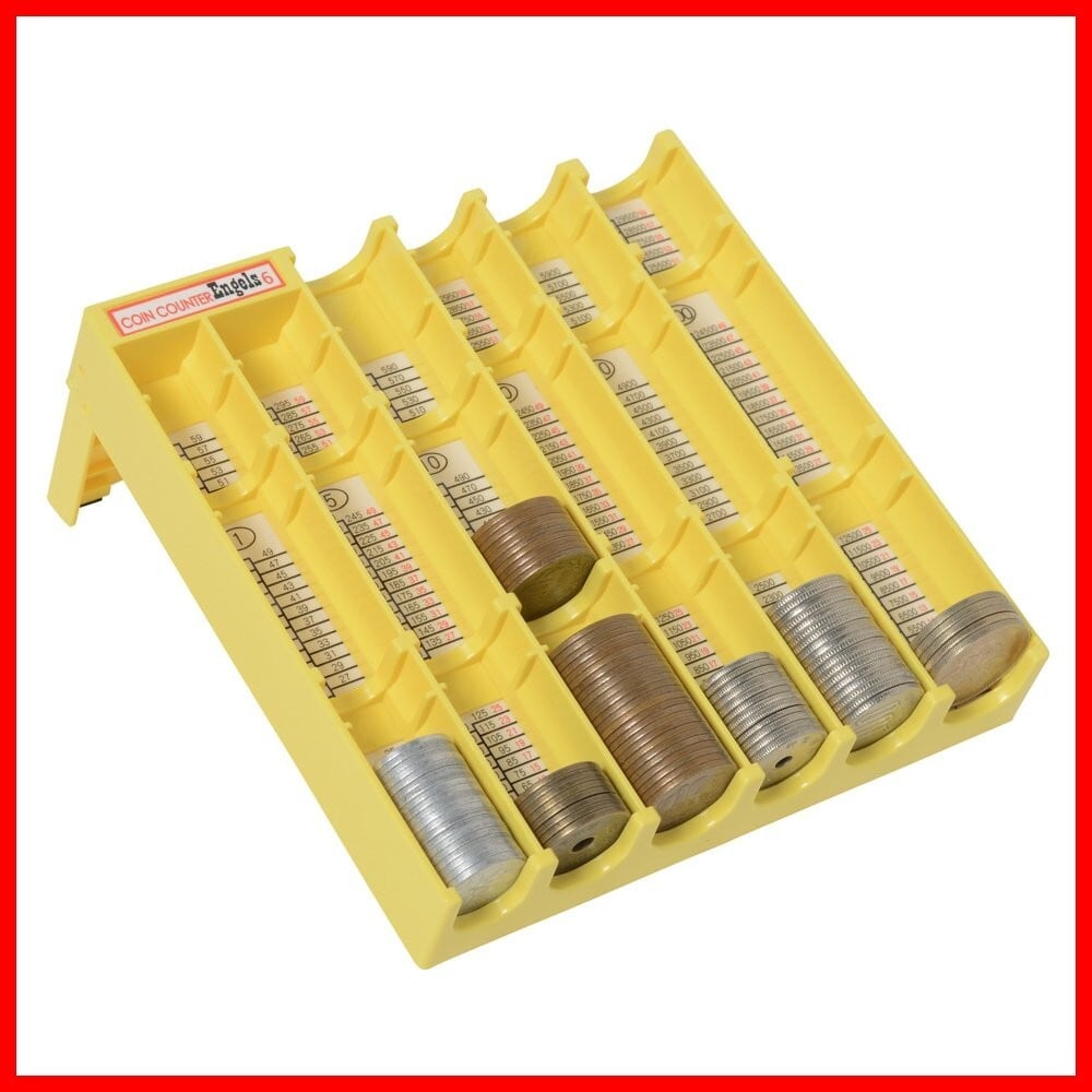 スタンド部分が折り畳めるコンパクトでカラフルなコインカウンター。